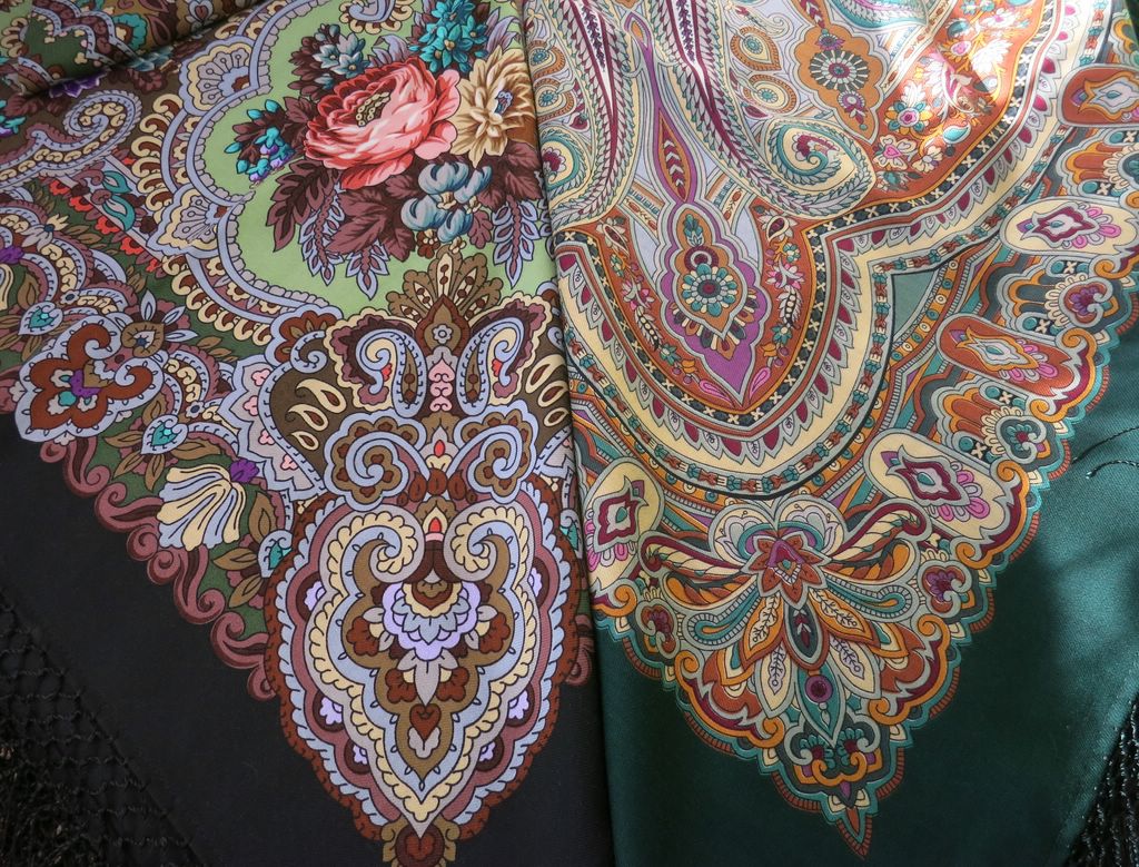 Но он уже видавший виды,со снятой бахромой и зауженной каймой.Ношу под верхнюю одежду.Раньше заметив этот платочек в магазине,было ощущение и понимание,что они разные.Но чтоб настолько
