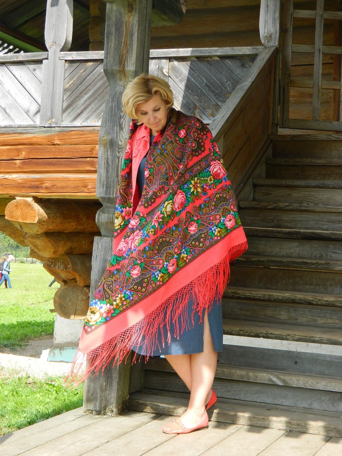 А я сегодня обновила "Славянку" Фадеевой. Долго терпела, с прошлого ноября, всё хотела под неё платье, но шали перебивают все остальные шмотки, так что пока вот так: