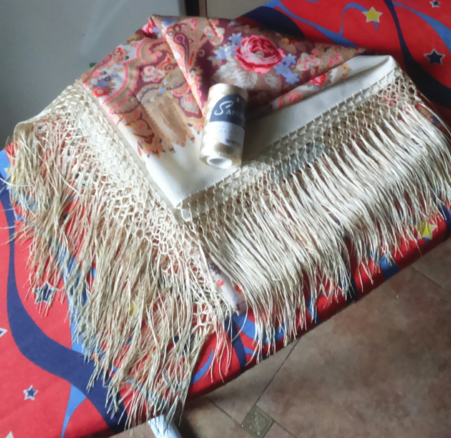 Я предпочитаю покупать на бахрому 100% шерсть, или с небольшим добавлением акрила. Когда акрила половина, то бахрома будет липнуть. А Женя писала, что наоборот предпочитает нитки с акрилом.