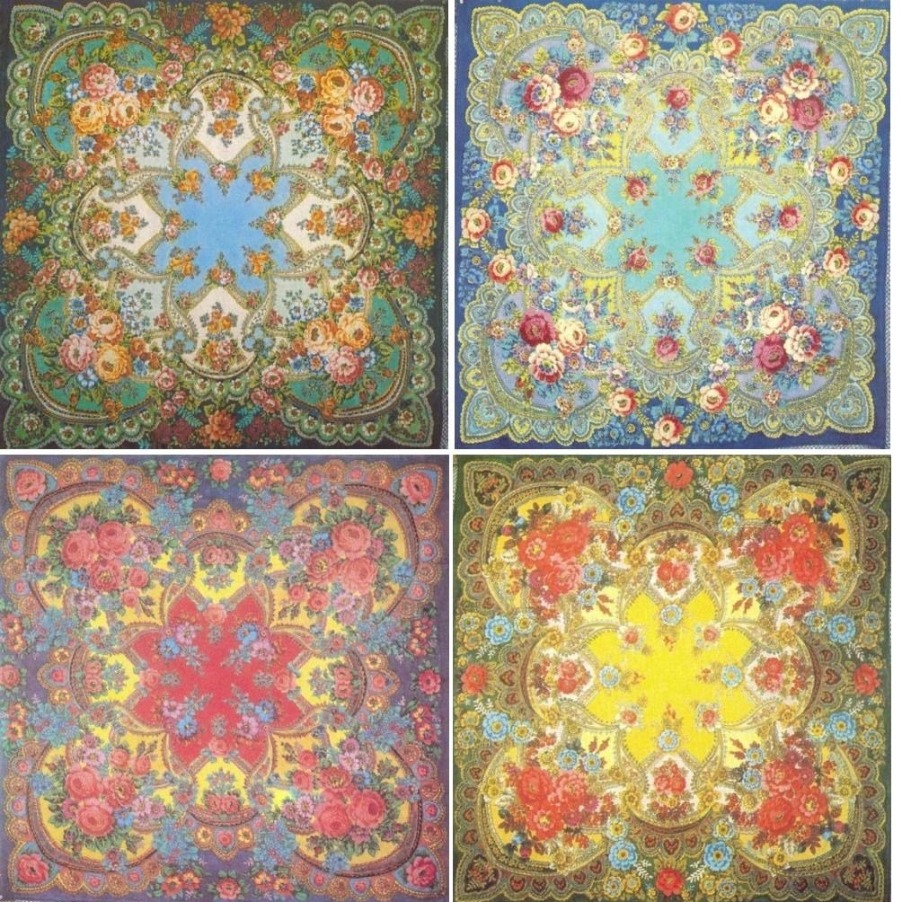 Шали выпускались в четырёх колоритах под названиями "Весна", "Лето", "Осень", "Зима" и в разных дополнительных колоритах