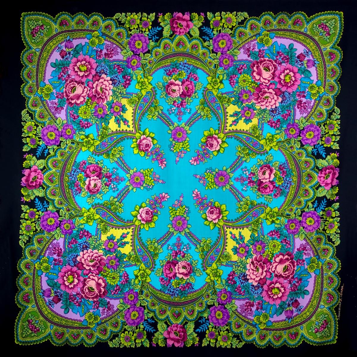 Мануфактуре понравилась идея художницы, и ее попросили нарисовать крок шали «Времена года. Осень» и запустили его в производство. Напечатали много разных колоритов этой шали и сейчас они широко известны среди коллекционеров.