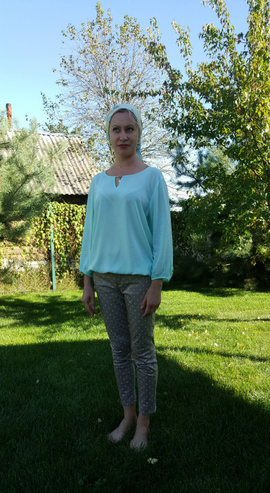 Сестричка Алёнушка, ^% в любимых Птичках! Чудесно! Вам очень идёт, так мило, так женственно, так нежно в платочке на голове! На фото не очень видно серёжек, но по ссылке посмотрела - просто прелесть! Представляю, как красиво смотрится всё вместе! И блузка, и брючки - всё понравилось! ::