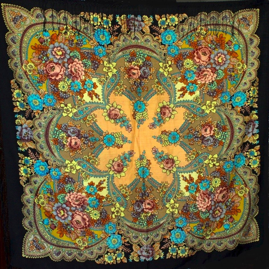Мануфактуре понравилась идея художницы, и ее попросили нарисовать крок шали «Времена года. Осень» и запустили его в производство. Напечатали много разных колоритов этой шали и сейчас они широко известны среди коллекционеров.