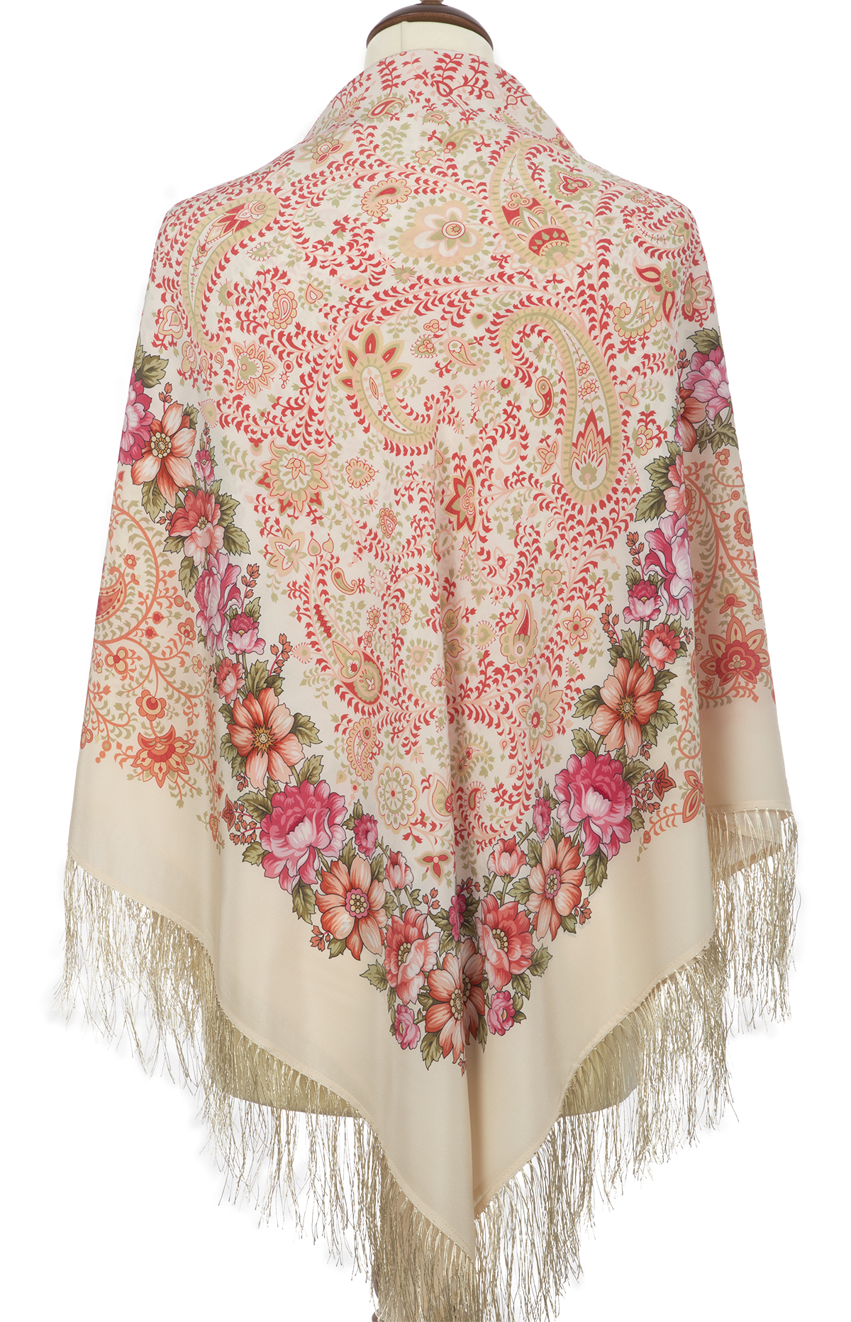 Шаль шёлковая (крепдешин, бахрома) 130х130