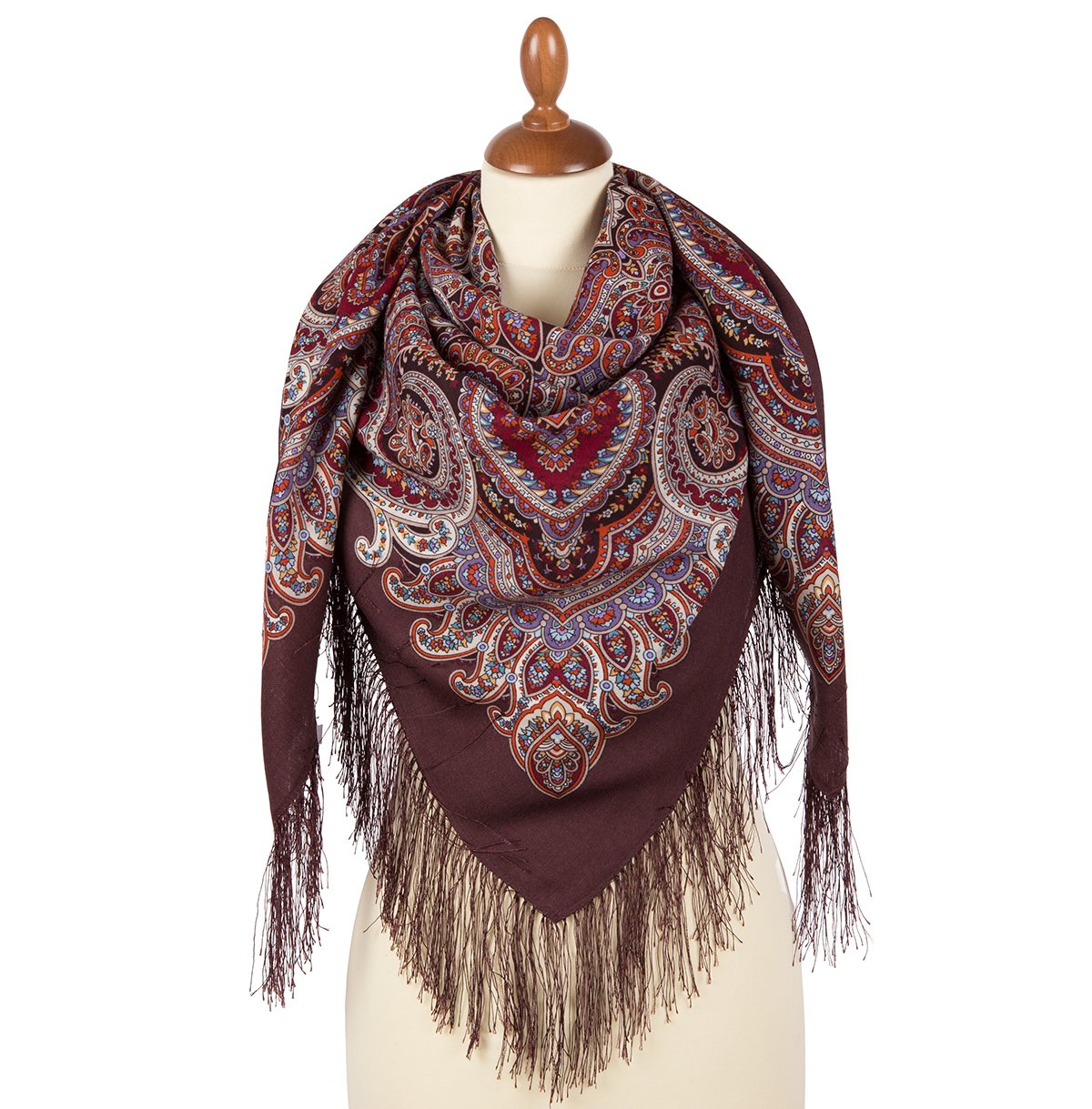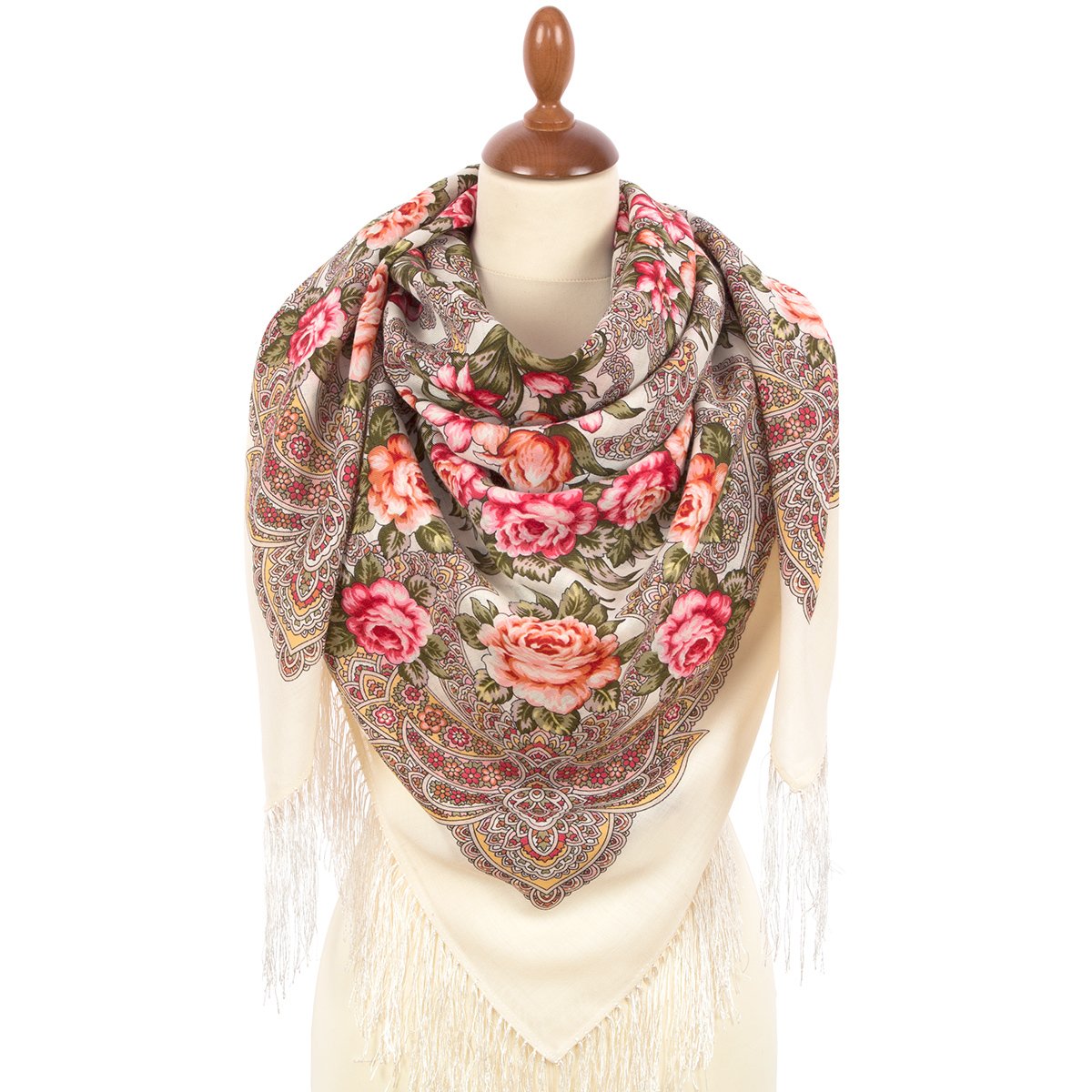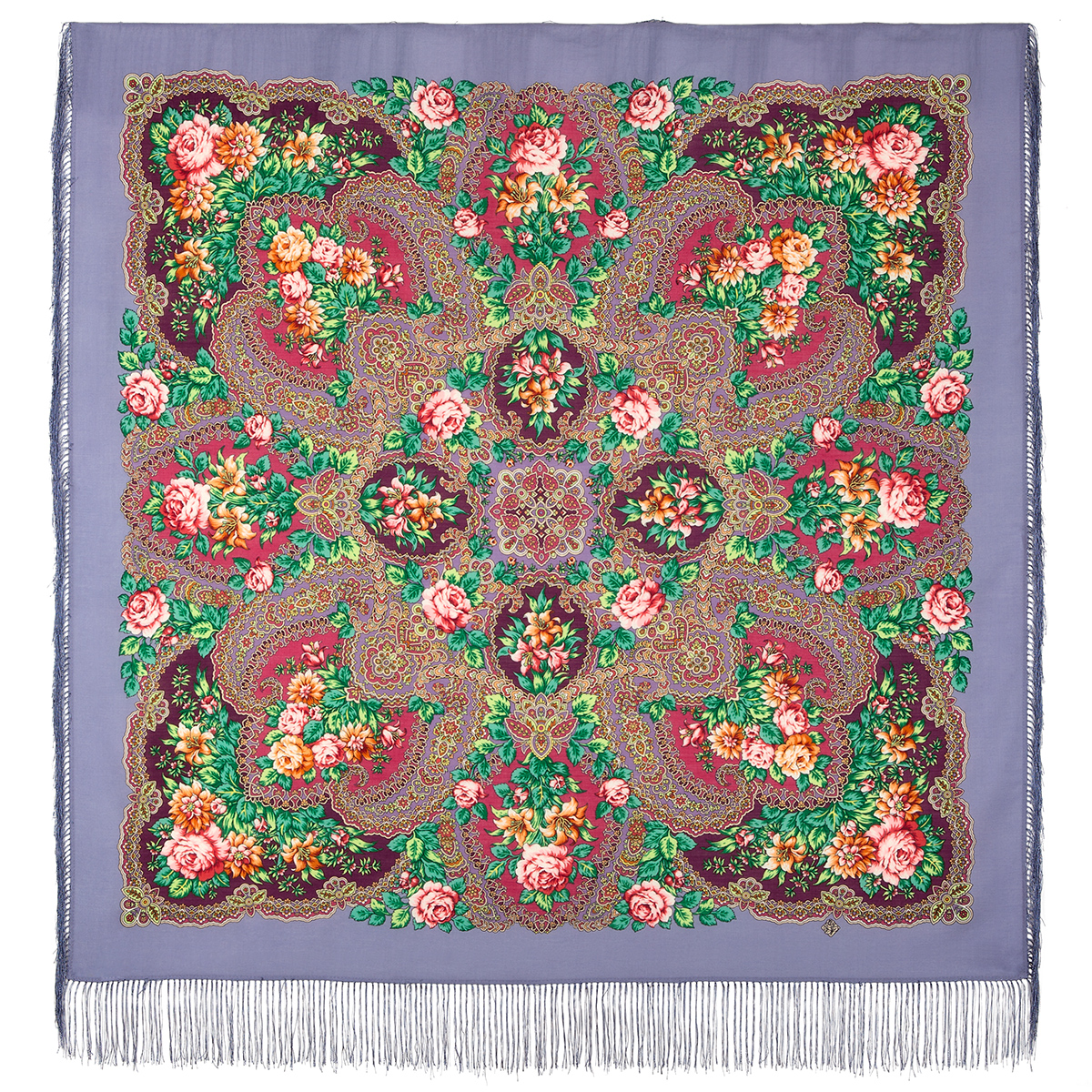 Платок шерстяной с шелковой бахромой, 125х125 см.