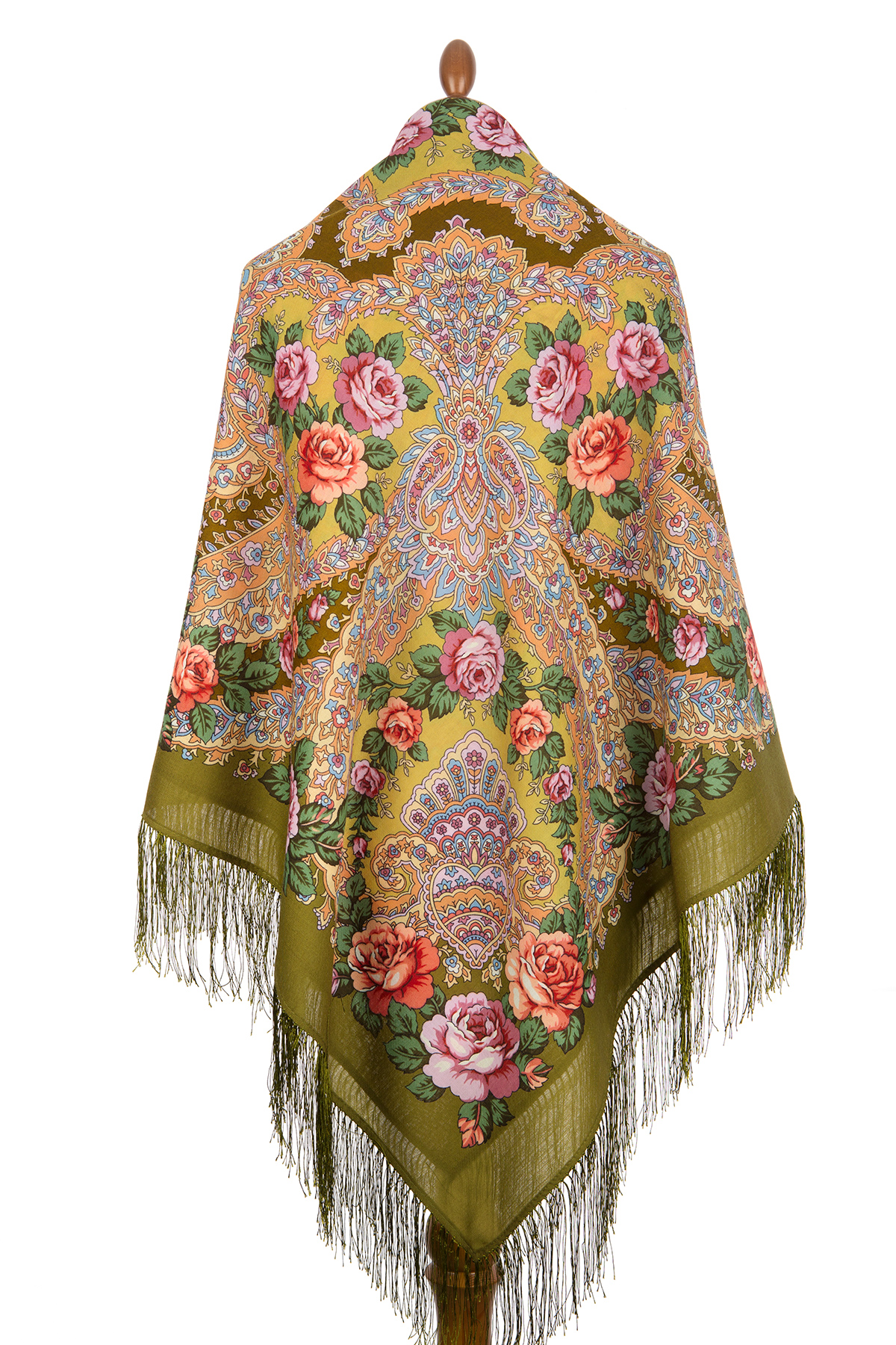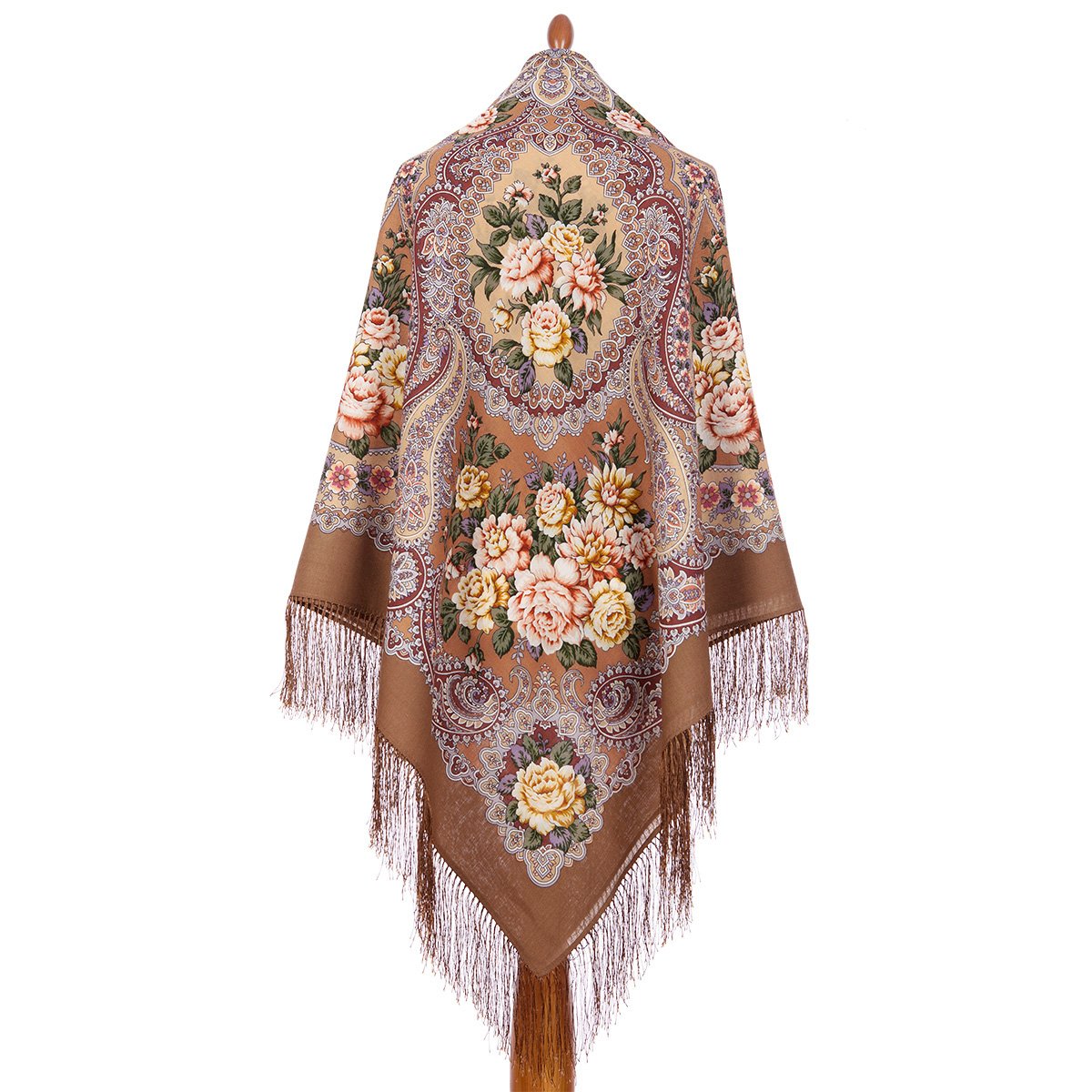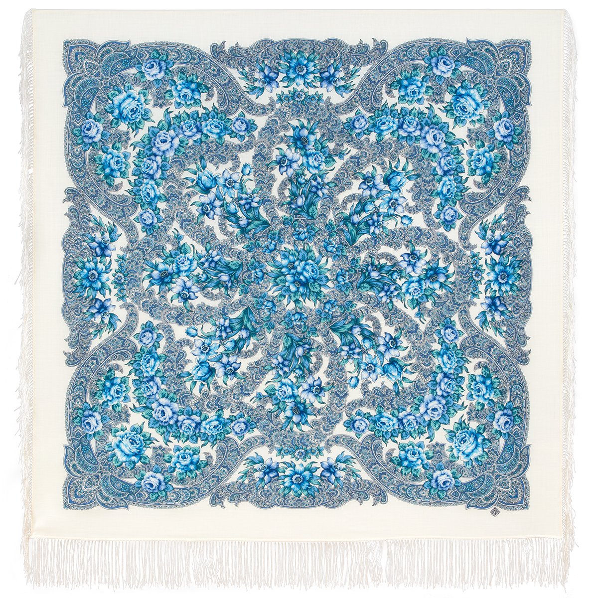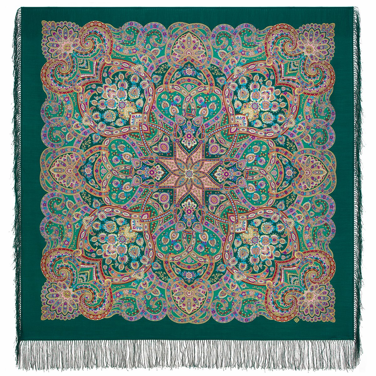Платок шерстяной с шелковой бахромой, 125х125 см.