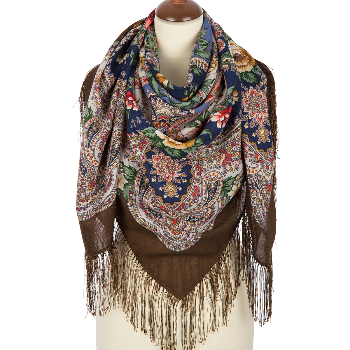 Платок шерстяной с шелковой бахромой, 125х125 см.