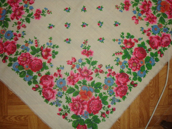 Платочек шерстяной 72х72, 85х85 с традиционным цветочным мотивом