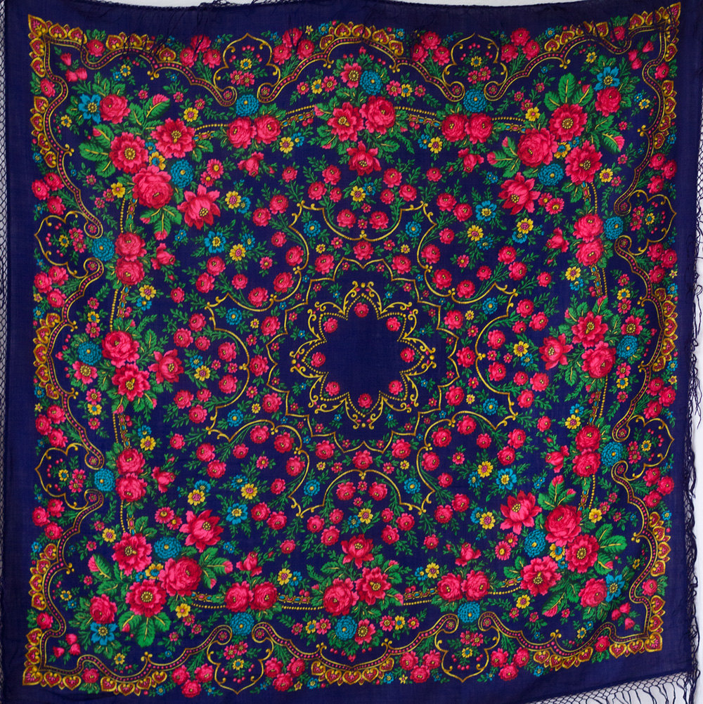 Шаль 150х150, 146х146 с популярным орнаментально-цветочным узором с "луковками"