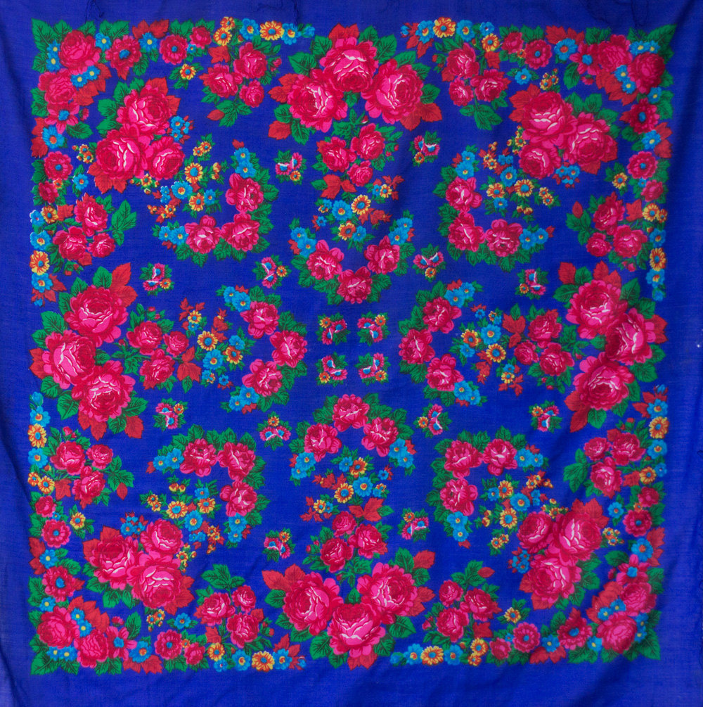 Шаль 145х146 с букетами роз, ромашек и гладиолусов с заострёнными лепестками (ОЛИМПИАДА-80)