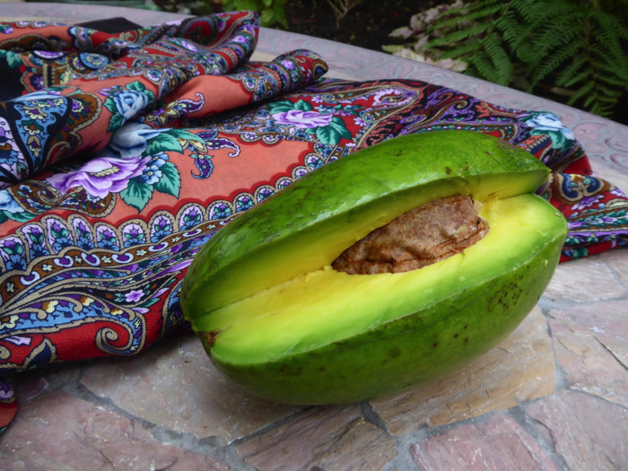 У меня сегодня просто. Разбирала авокадо во дворе, зтот зеленый уже спелый оказался. Цвет так привлек, что не удержалась и сфотографировала... Шаль не совсем "подходящая", но Вечер в Усадьбе был на плечах, вот и вошел в кадр ;)