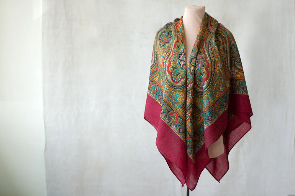 Шаль 125х125 с восточным орнаментом_ made in Japan_вшитая бирка