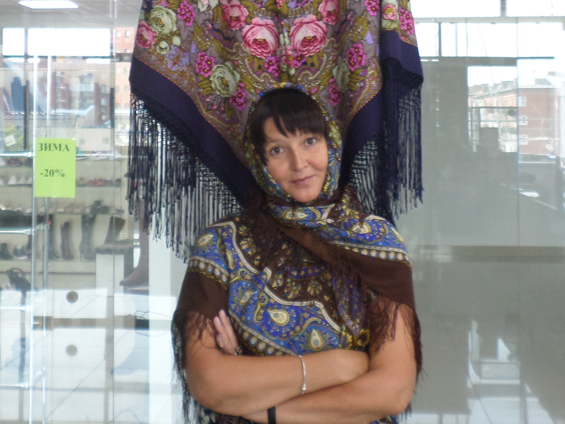 Демонстрируем ношение платков и шалей.