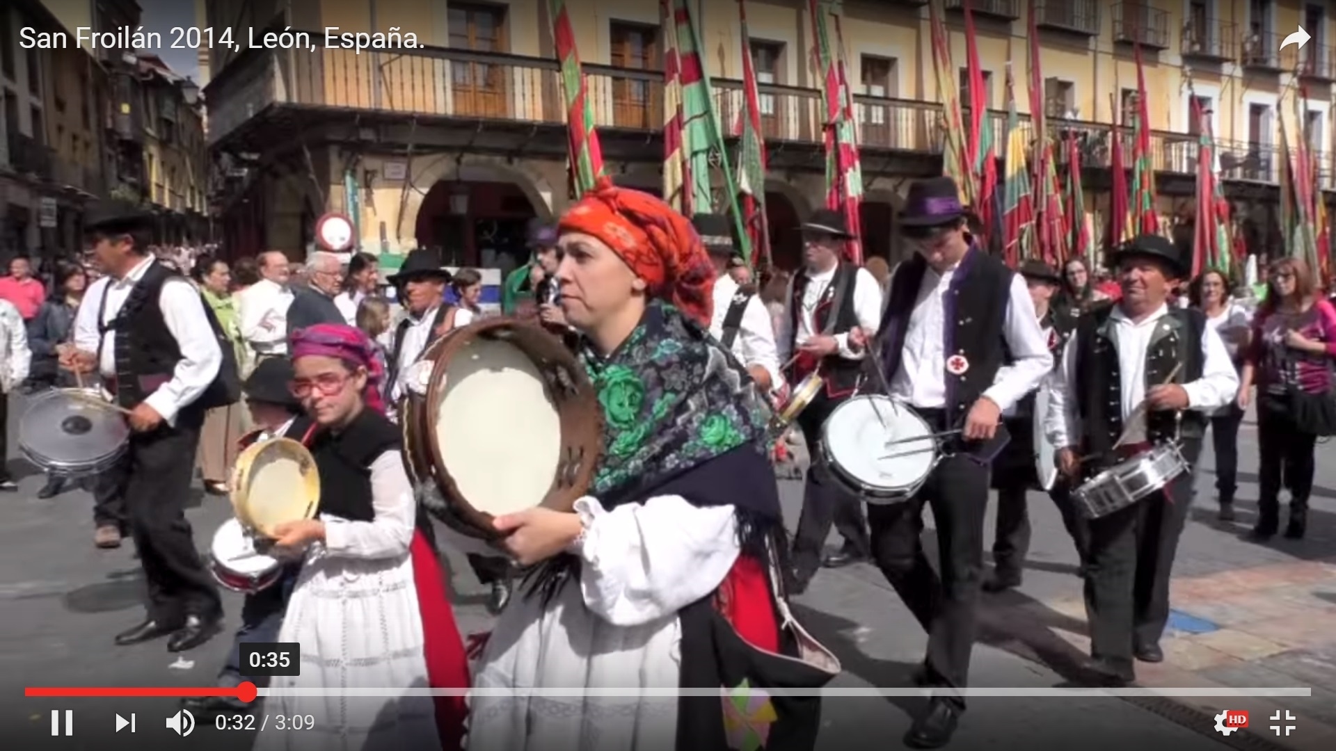 Еще одно видео с San Froilan-2014, среди танцующих старушка в красных Браслете и Золотых листьях.