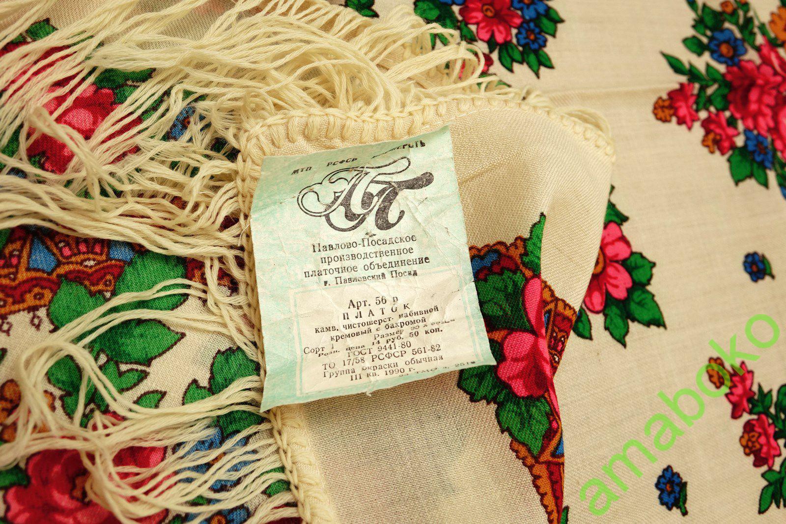 Платок шерстяной 89х89 с двойной "пружинкой" и гирляндой из мелких розочек по кайме_Этикетка МППО 1989_Этикетка МППО 1990
