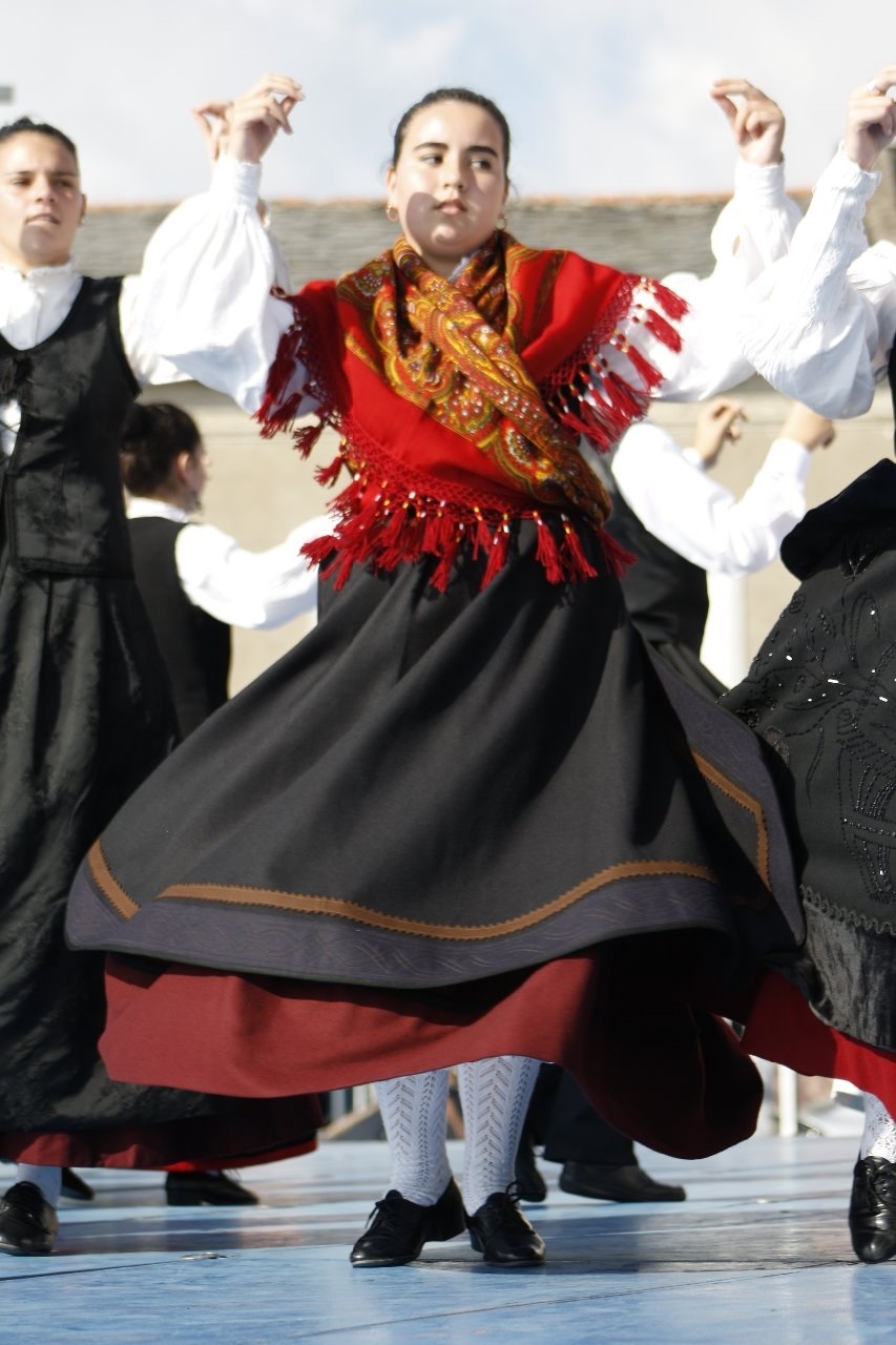 Нашла сайт провинциального галисийского ансамбля "Antaruxas и Sorteiros". Группу эту, входящую в культурную ассоциацию с тем же названием, создали в 1979 году жители Фонсаграды (муниципалитет в провинции Луго с населением чуть больше 4 тыс.) с целью изучения и сохранения истории региона через музыку и танец. Используют костюмы и инструменты, характерные для региона, участвуют во множестве фестивалей и конкурсов в Испании и за рубежом. Из фотоотчетов с мероприятий видно, что в 2009 году костюмы были совсем другие, преобладал черный цвет, цветастых шалей не было и в помине (фото 1, 2).