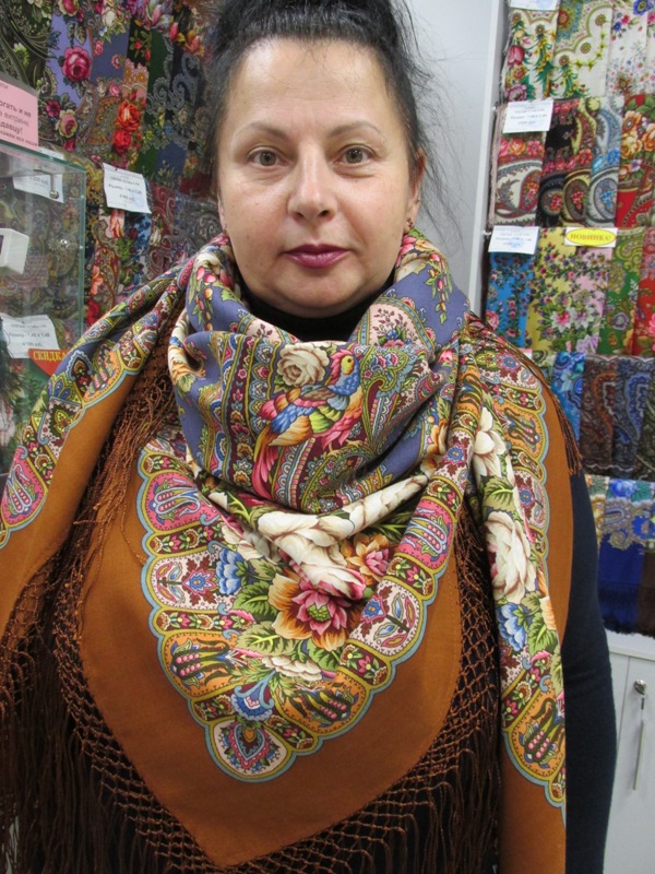 Демонстрируем ношение платков и шалей.