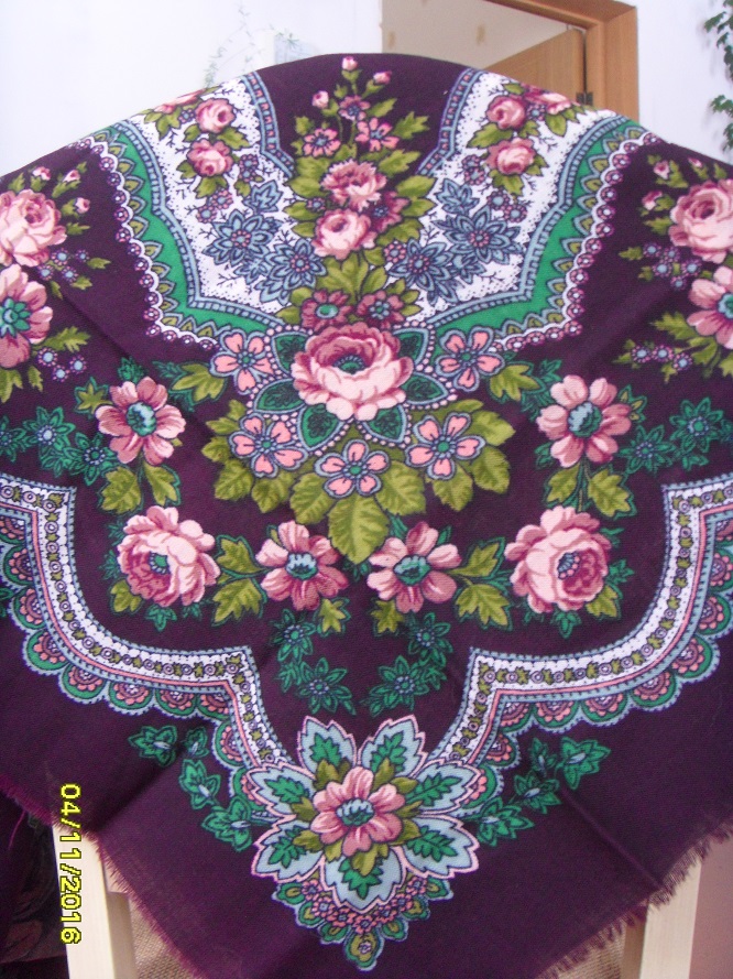 Анютины глазки, здравствуйте. Платок у вас интересный. Очень. По такой фотографии трудно что-либо вразумительное сказать. Да и тему вы выбрали не совсем ту. Здесь мы современный ассортимент, выпускаемый ППМ, "коллекционируем"