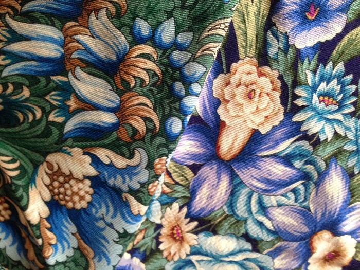 Еще хотим ( опять таки фото Ленуси, агента 007 ;) ) показать фото шали Остановись мгновенье 18. Когда Лена выбирала для меня эту шаль, то обратила внимание, что шали отличаются друг от друга. На той шали, что слева, розы кораллового оттенка, оливковые цвет, более темный. Да и ткань толще, т.е. обычная уплотненка. А шаль слева, на тонкой, шелковистой ткани, похожей по ощущениям на "итальянку" (Кликните, чтобы почитать, что спрятано под катом).... Синий цвет более насыщенный, оливковый светлее и вообще шаль смотрится ярче. Розы - розовые :lol: пардон, за тавтологию. Холодного оттенка. Ну на фото, все видно. Само собой, я выбрала шаль на тонкой ткани. теперь жду-не дождусь, когда ко мне приедет эта красавица. U^U