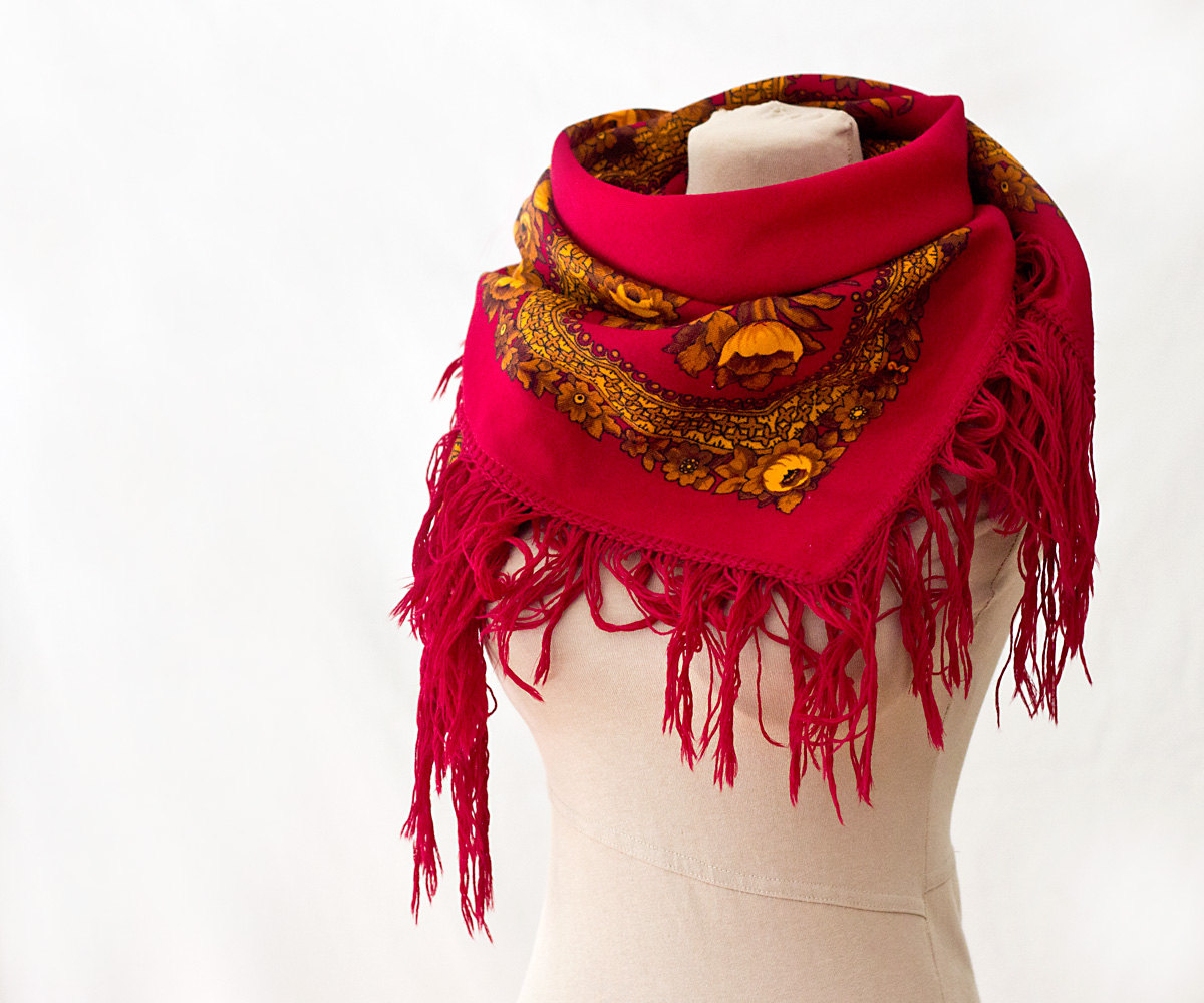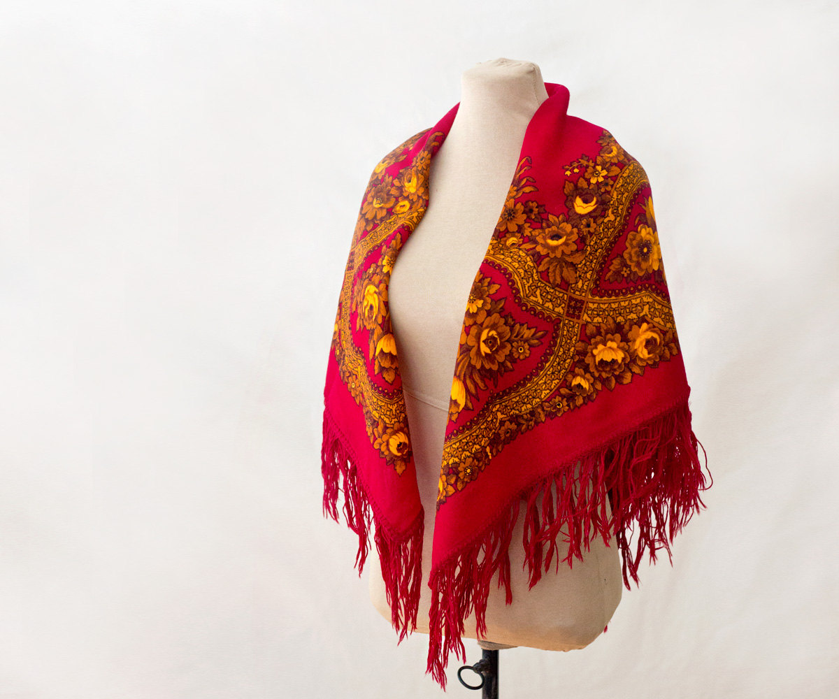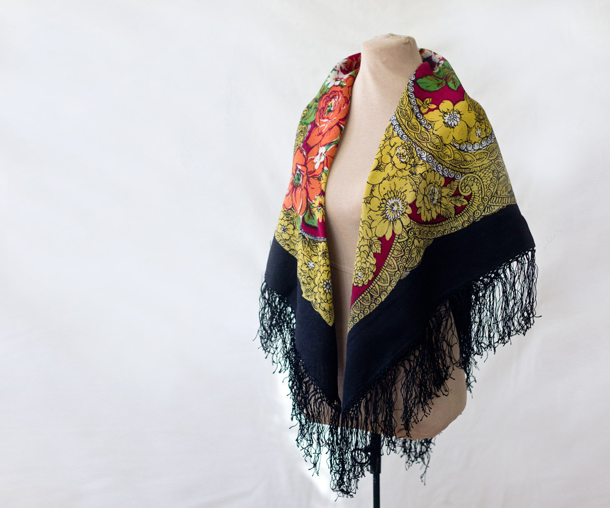 Платок шерстяной с орнаментально-цветочным мотивом неустановленного производителя