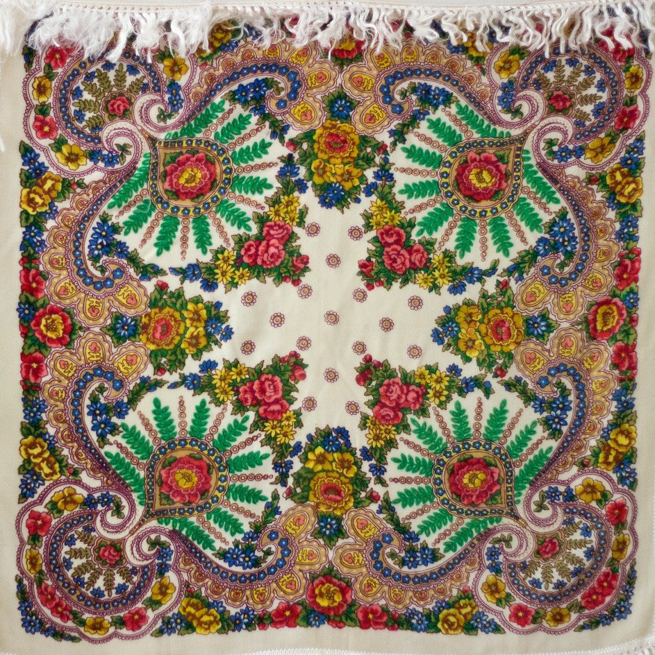 Платок шерстяной 89х89 с геометрическим орнаментом из цветочных гирлянд_Галереи художников