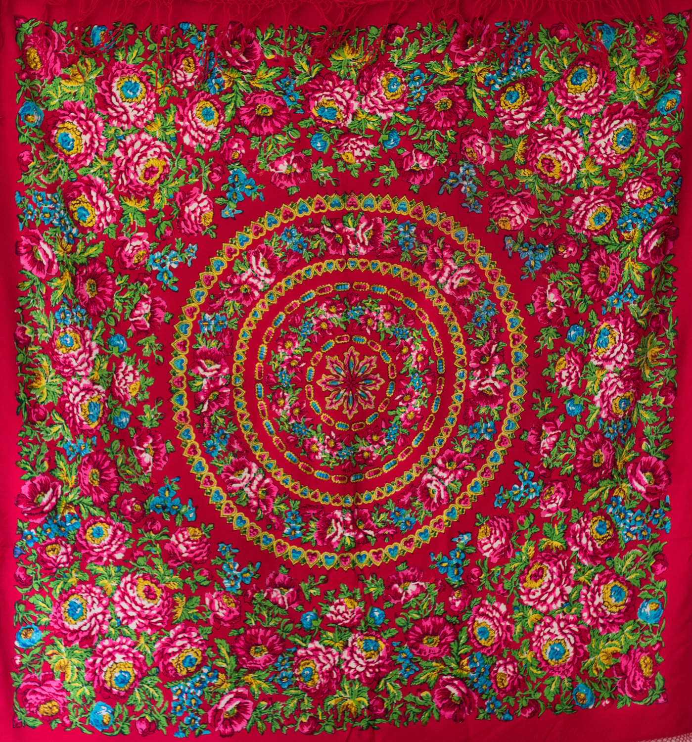 Шаль 150х150 с традиционным цветочным мотивом "круги"