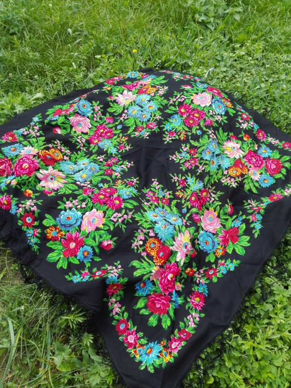И еще вот такой, размер 89 на 89, мама говорит этот платочек еще от ее бабушки, значит ооочень старенький))) был в трех вариантах,черном,зеленом и белопольном.