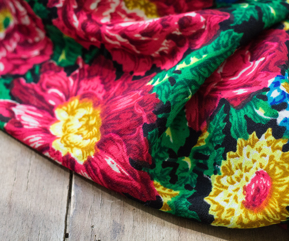 В 70-х гг. мало, кто носил большие шали, вот она и разрезала его на 4 части и раздарила на память племянницам и внучкам. Этикеток не сохранилось. Знаю только, что платок был куплен в Москве. ППБ_29