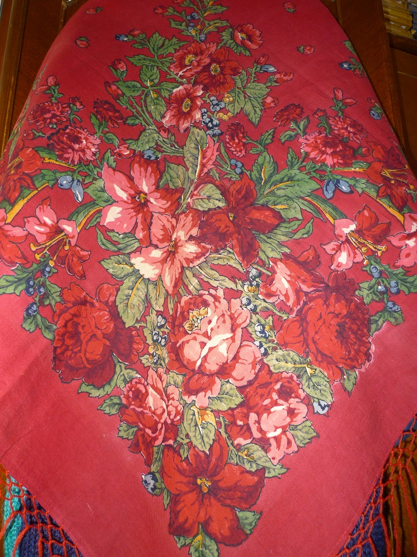 Это Вам спасибо за собранную коллекцию и за Ваш огромный труд. Давно собиралась Вам его показать, да, как-то неудобно было выставлять кусочек от шали)) Жаль, что фотоаппарата хорошего нет, но цветопередача получилась правильная. Выглядит он монохромным красным-прекрасным.