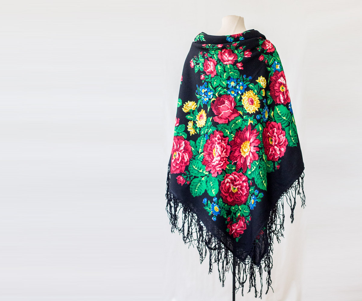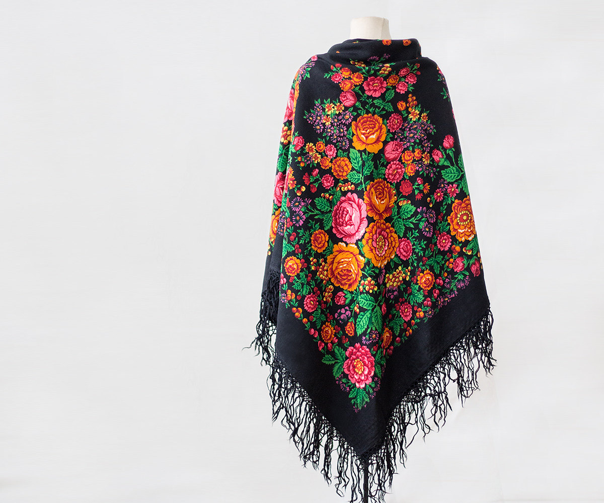 Шаль шерстяная 150х150 с гирляндой из веночков по кайме и букетиками_Галереи художников