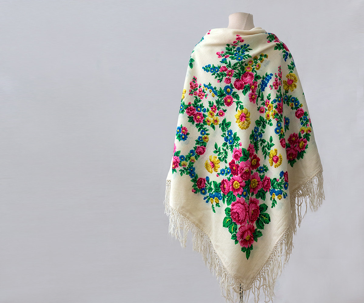Шаль шерстяная 150х150 с гирляндой из веночков по кайме и букетиками_Галереи художников