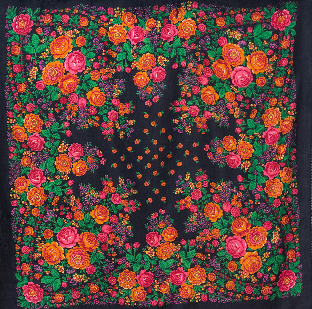 Шаль шерстяная 150х150 с гирляндой из веночков по кайме и букетиками_Галереи художников