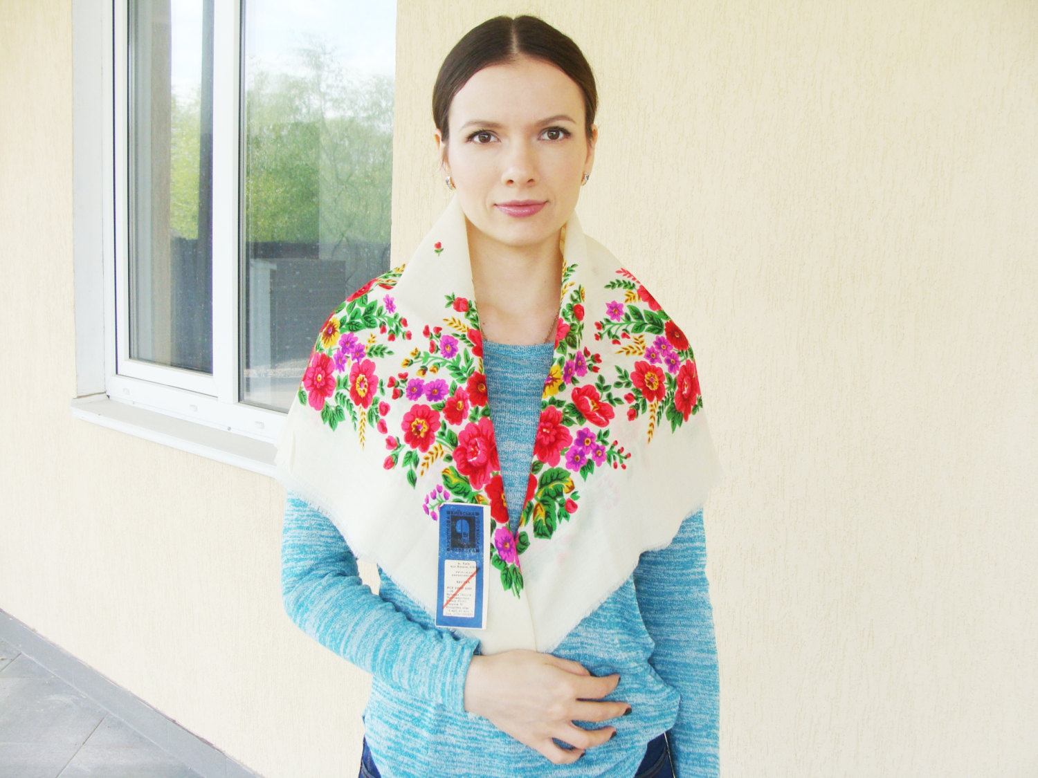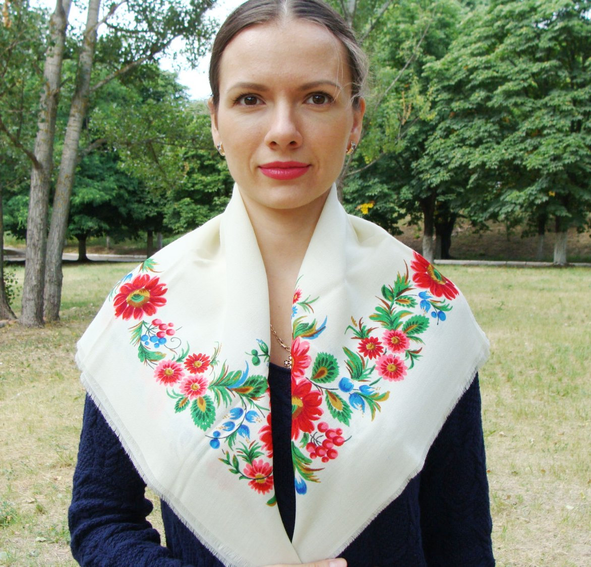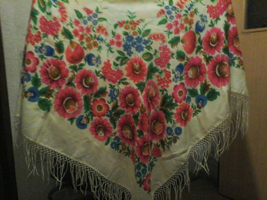 Платок с этикеткой киевской платочной фабрики ТРОЯНДА из 1970-х