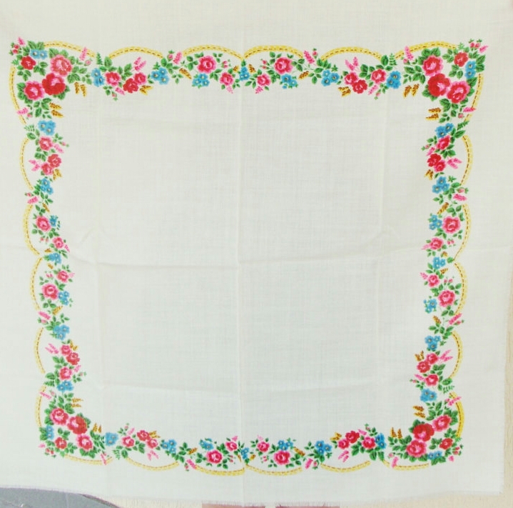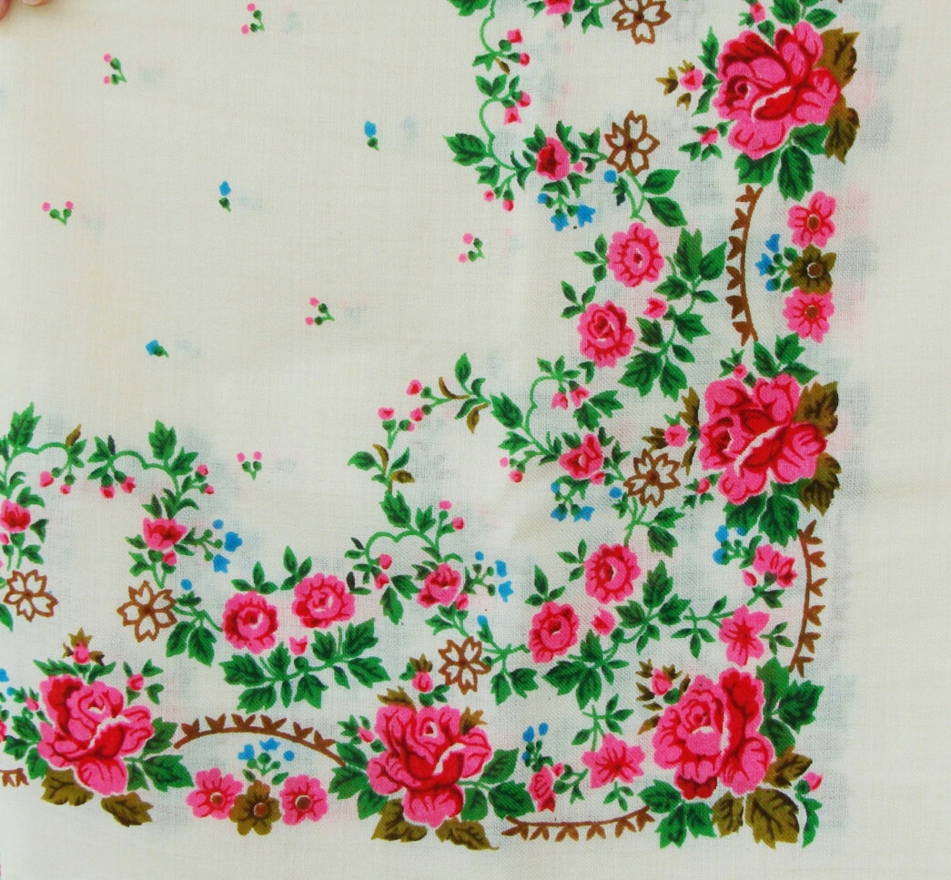 Другой платок аналогичного колорита с этикеткой киевской фабрики ТРОЯНДА