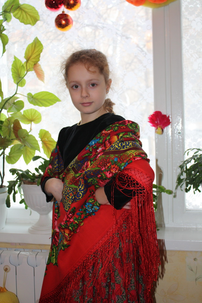 Оба варианта нравятся! Первый- яркий, задорный, огонь! А второй -нежный, просто Снегурочка, и еще этот образ ближе к сегодняшней жизни, так ребятки увидят, что шали не только купчихи или дворяночки носили, но и сегодня можно сделать свой наряд неповторимым и невероятно красивым, накинув шаль!