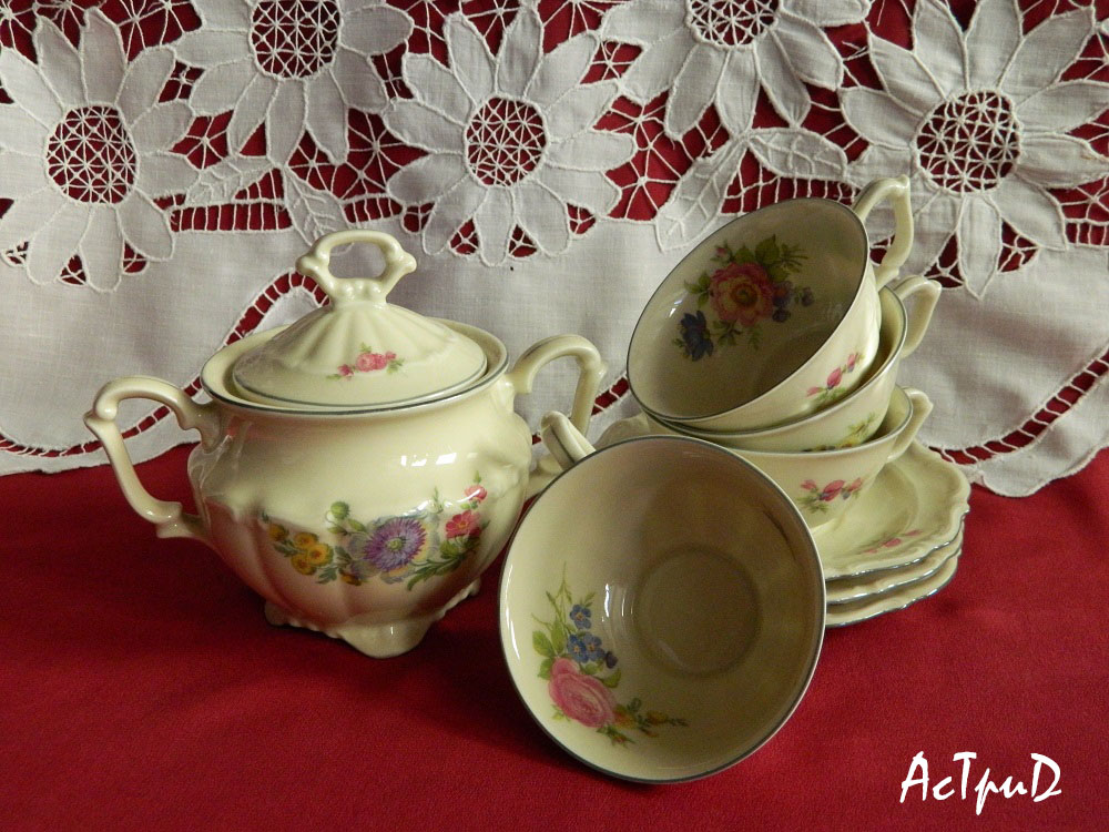 Поискала информацию о производителях в интернете. Голубой сервиз сделан на керамическом заводе Ditmar Urbach информации о нем в интернете немного, завод находится в Чехии, но на моём сервизе написано Deutschland, с такой маркировкой изделия выпускались во время захвата Чехословакии Германией с 1940 по 1945 года.