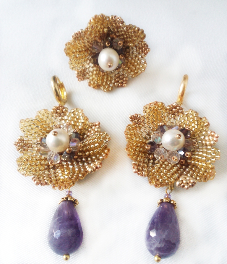 Ну и последняя моя работа. Большой комплект : колье, лариат, 2 кольца, серьги, брошь. Делала её целый месяц.