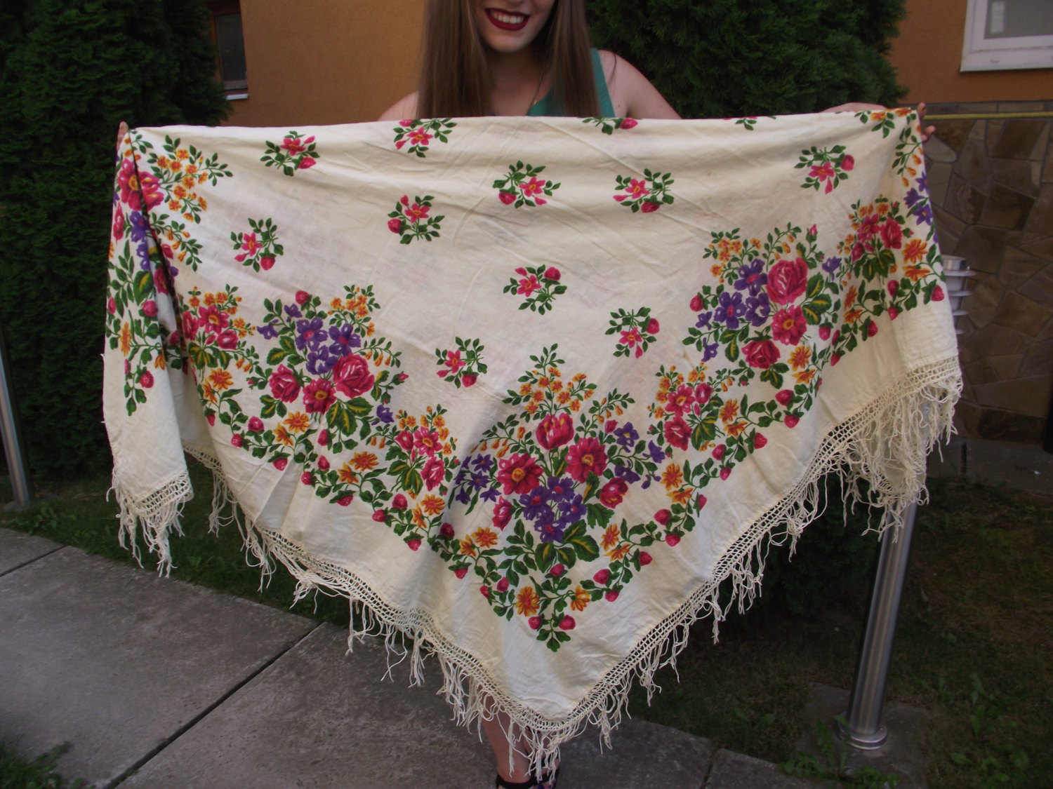 Шаль, хлопок, кажется, такой не было. 145 х 145.