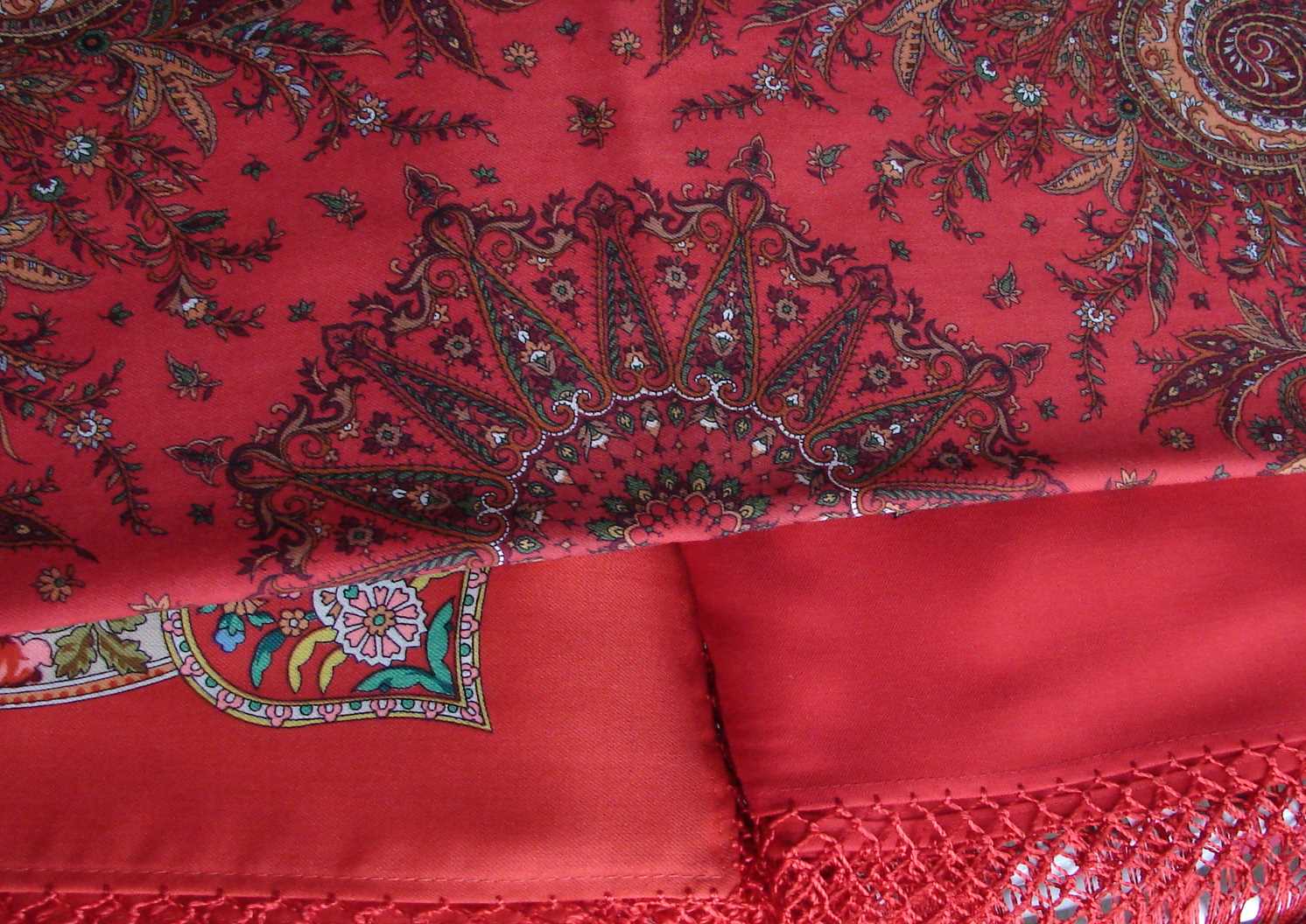Примерить негде, а купить очень хотелось, но и красный на Губернаторском для меня достаточно яркий, хорошо, что его не много, ещё более яркие шали меня не украсят.