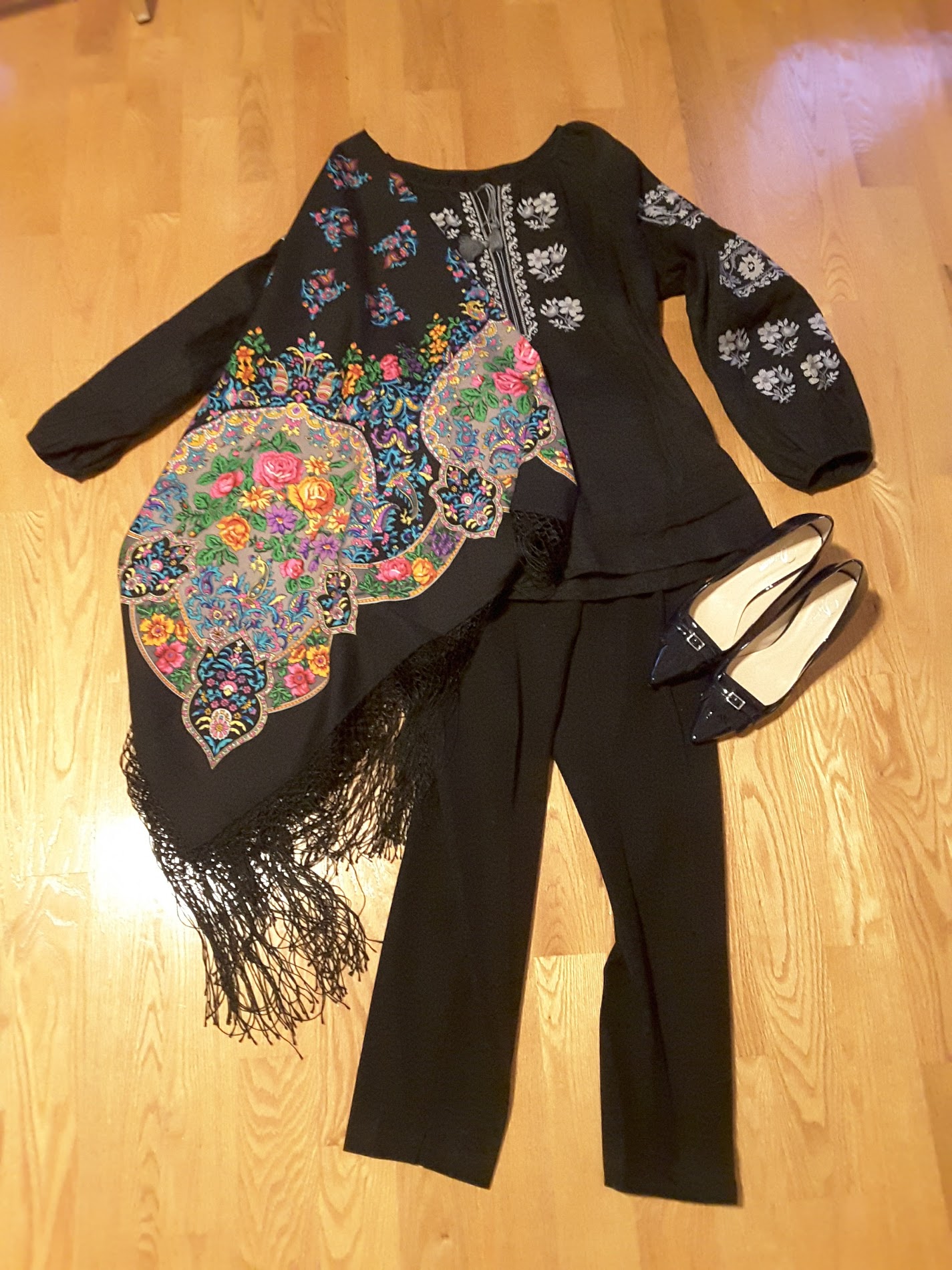 Только на фото отметила перекличку букетиков середины шали с букетами на вышиванке. Видимо подсознание заметило это соответствие ранее сознания )))