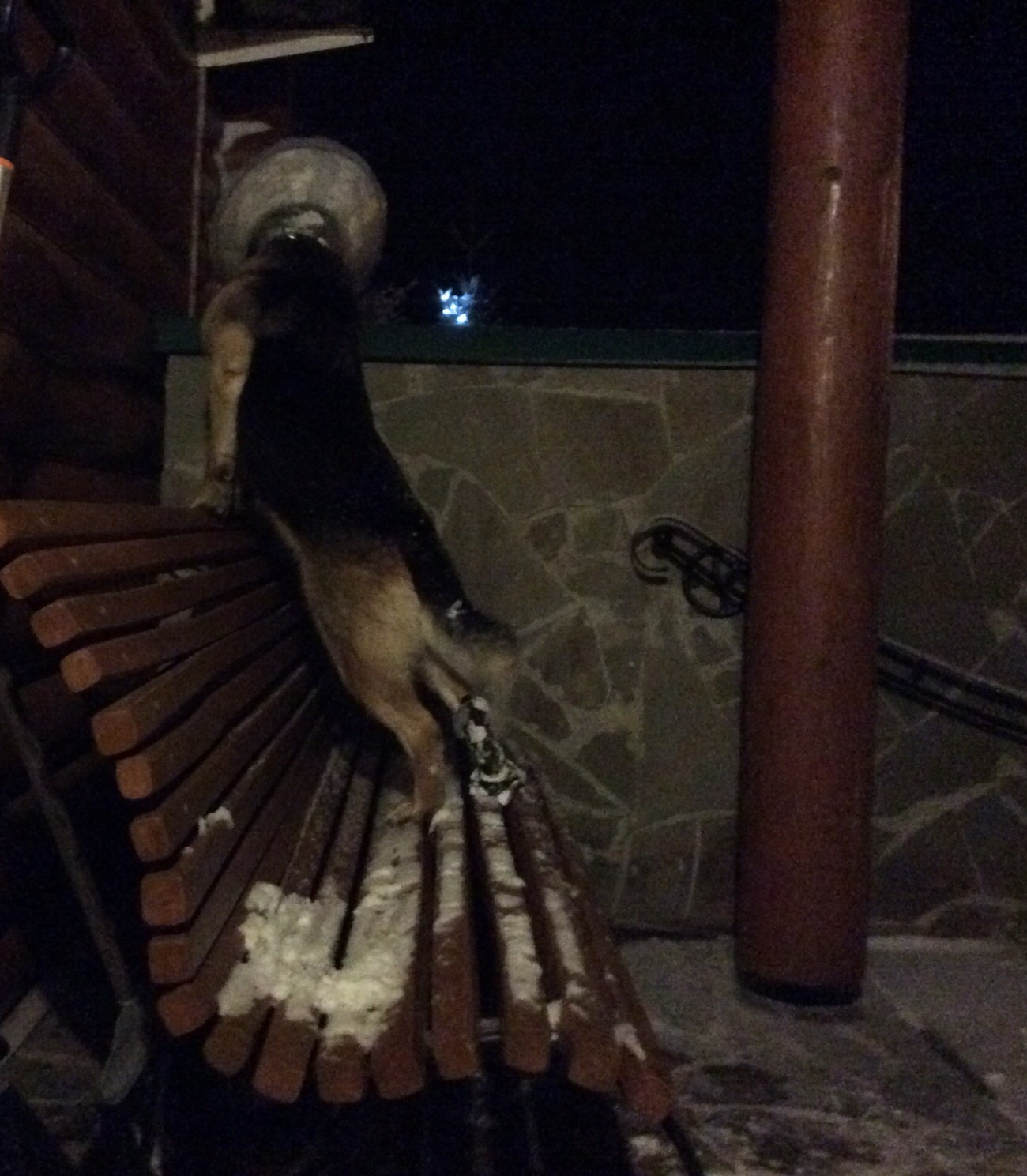 Yanka, я Вам очень благодарна за участие(Кликните, чтобы почитать, что спрятано под катом)... Я читала про надувные воротники в интернете, но у нас в продаже их нет. Надо сказать, что собака оказалась такой гуттаперчевой, что даже в пластиковом конусе, доходящее до края морды, умудряется так сложиться, что моментами достает до лапы. Воротник у нас уже восьмой по счету. Пока даю успокаивающие таблетки, лапа вот-вот заживет. Боюсь, конечно, привыкания к транквилизатору, но другого пути, чтобы понять реагирует ли она на рану или это сформировавшийся рефлекс, нет. Как видите, она очень активна, ей нет ничего залезть на скамью. Наша собака так не делала.