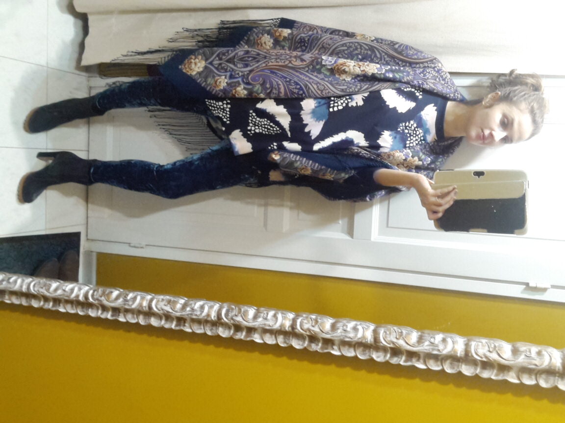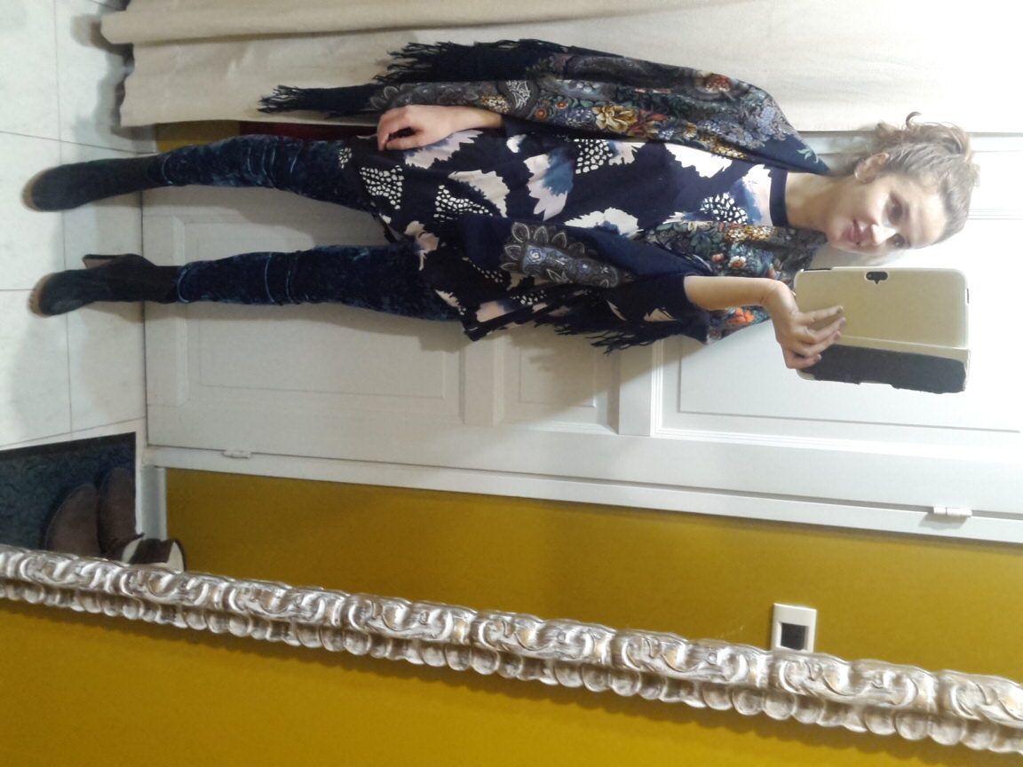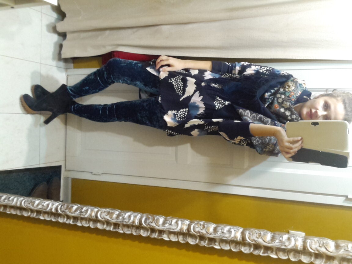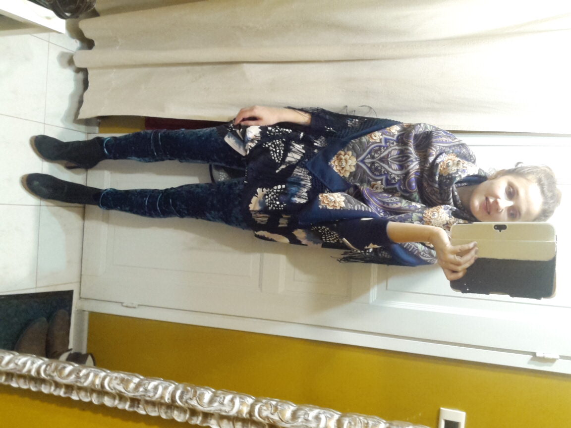 С обоими платками прекрасно, хотя мне больше понравилось с НСВ. Бархатные штаны с ботильонами шикарно.