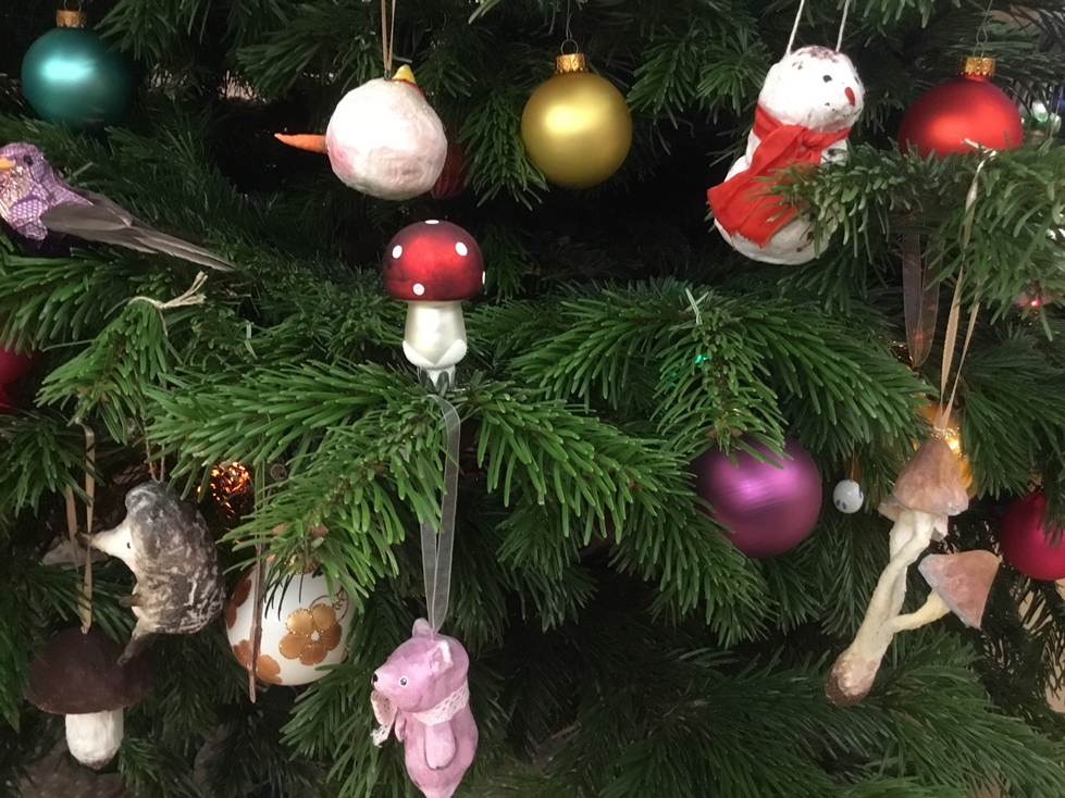 Покажу тоже ёлочку. Это ёлочка моей сестры, каждый НГ мы всей семьёй собираемся у неё дома. Игрушки на ёлочке разные: немецкое стекло, винтажные, а так же много сделанных моей сестрой, она сама делает очень красивые игрушки для ёлок и не только.