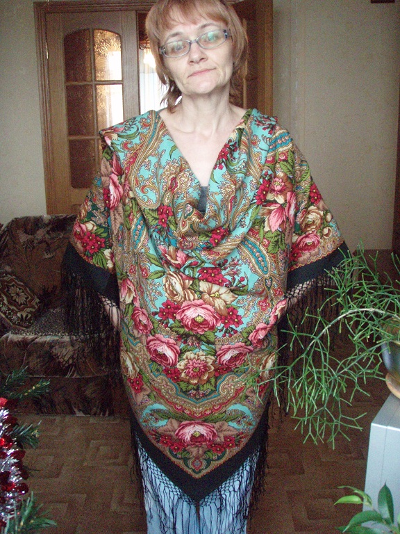 Хороши шальки! Небесный, всё-таки, очень красивый платок. Да, вот, сняли же....