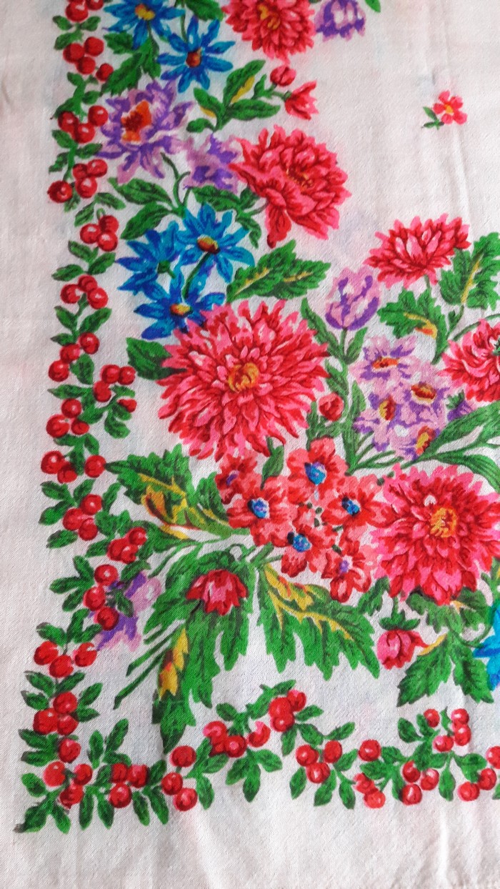 Платок 73х72. Шерсть. Информация об этом платке публиковалась в кн. Толстухиной и Полосиновой 2015 г. Написано, что плат 1960-х гг, ручная набойка.