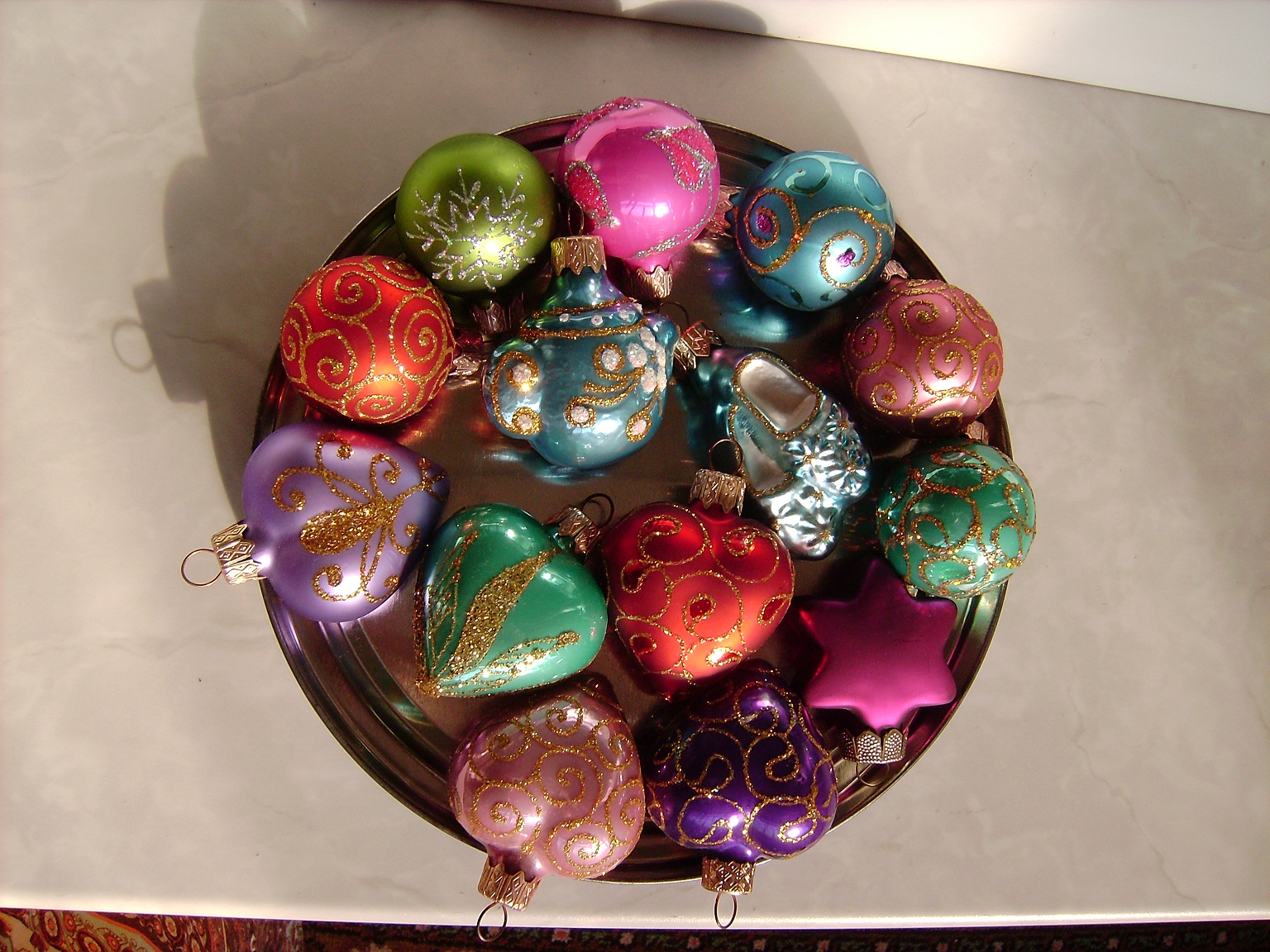 Тётушка Helen писал(а):а это шарики: тут есть и "вдавленные", по другой классификации "светофор"-?-я правильно поняла это про такой формы шарики? а ещё, если присмотреться, то некоторые делали наполовину прозрачными и вставляли в них мишуру (верхний ряд 1), дождик (верхний ряд последний), длинную тонкую бусину (самый крайний справа) - эти из 80-х А ещё...ночью... некоторые шарики Светились!!!! (нижний ряд и средний ряд-центральный)- просто их фосфором разукрасили