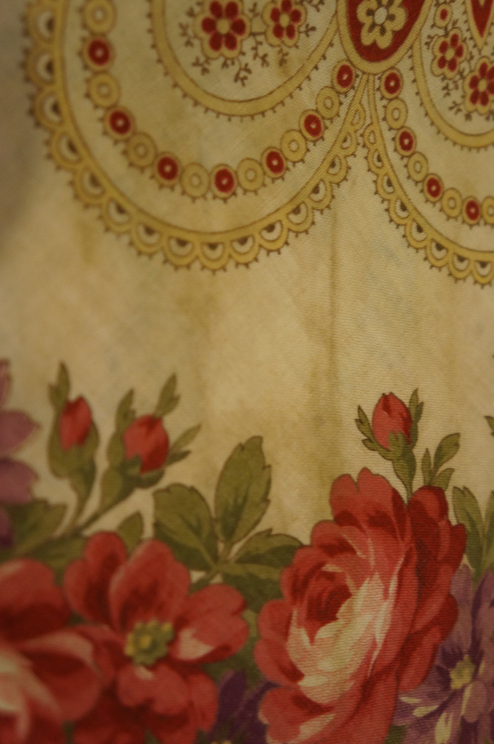 3). На хлопке в размере 83х83 с осыпкой (эта информация - со слов продавца; правда, продавец уже лет 10 успешно продает платки, поэтому, думаю, не ошибается и не врет. Тем более, что известно довольно много хб платков, печатавшихся в разных размерах).