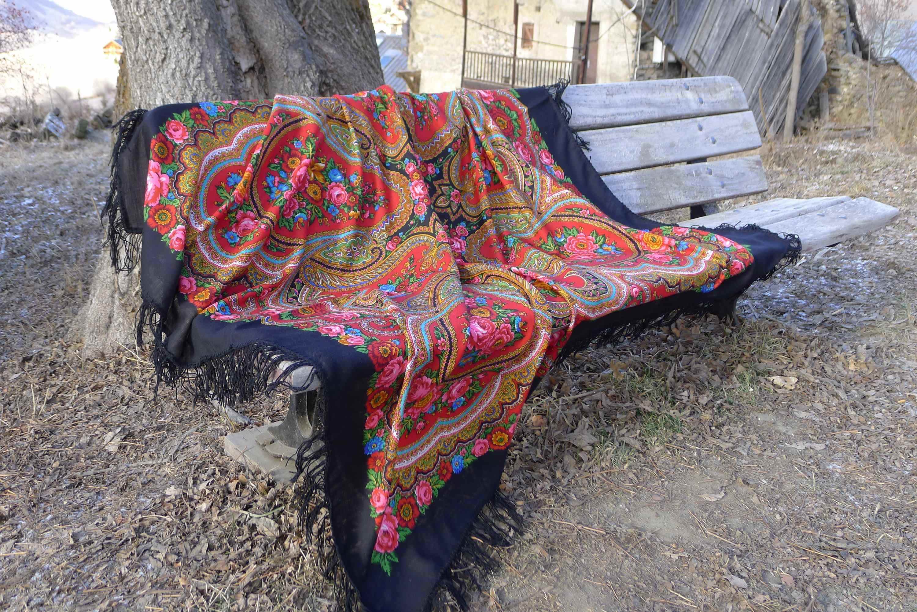 Стало уже традицией брать в зимние поездки Морозко, абсолютно зимний платок, на этот раз почему-то захотелось взять шали именно традиционных расцветок, подумалось, что очень хороши они будут среди снегов. Так и оказалось.