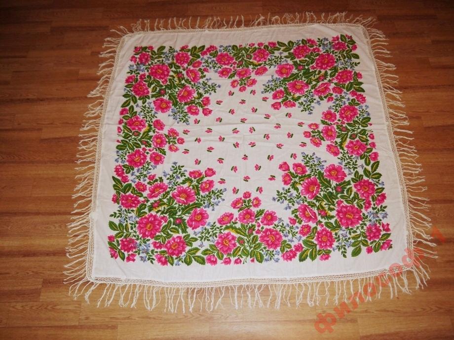 Вот такой еще старый хлопок нашла. Размер не сохранила, но думаю где-то 90х90 см.