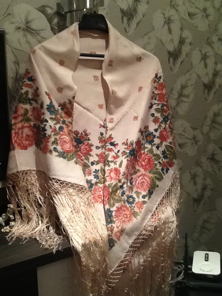 Ткань - хлопок, в точности на таком печатали хб шали в 1970-80-е гг в Павловском Посаде.